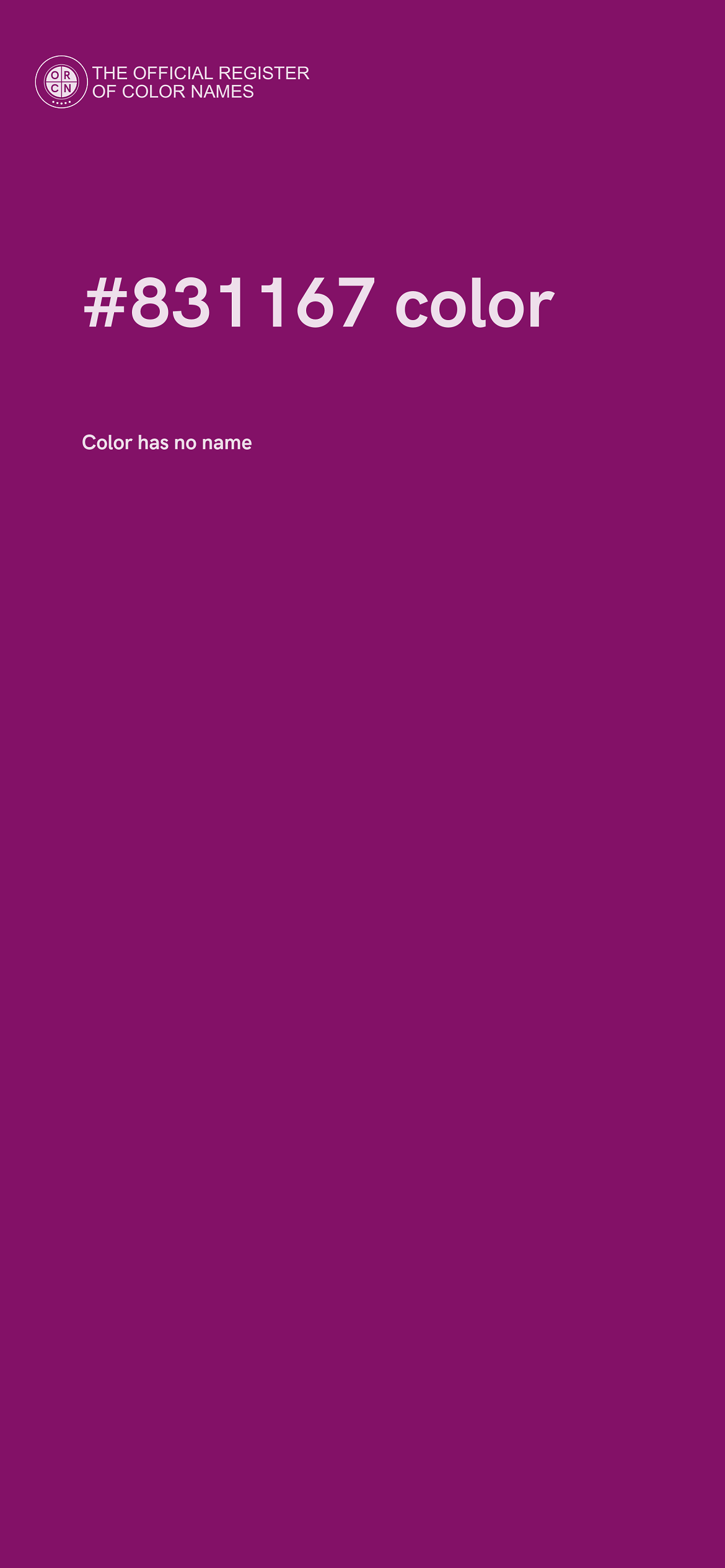 The digital color HEX #831167 belongs to the Rose Color Family featuring High Saturation (Saturation Family) and Neutral (Brightness Family).