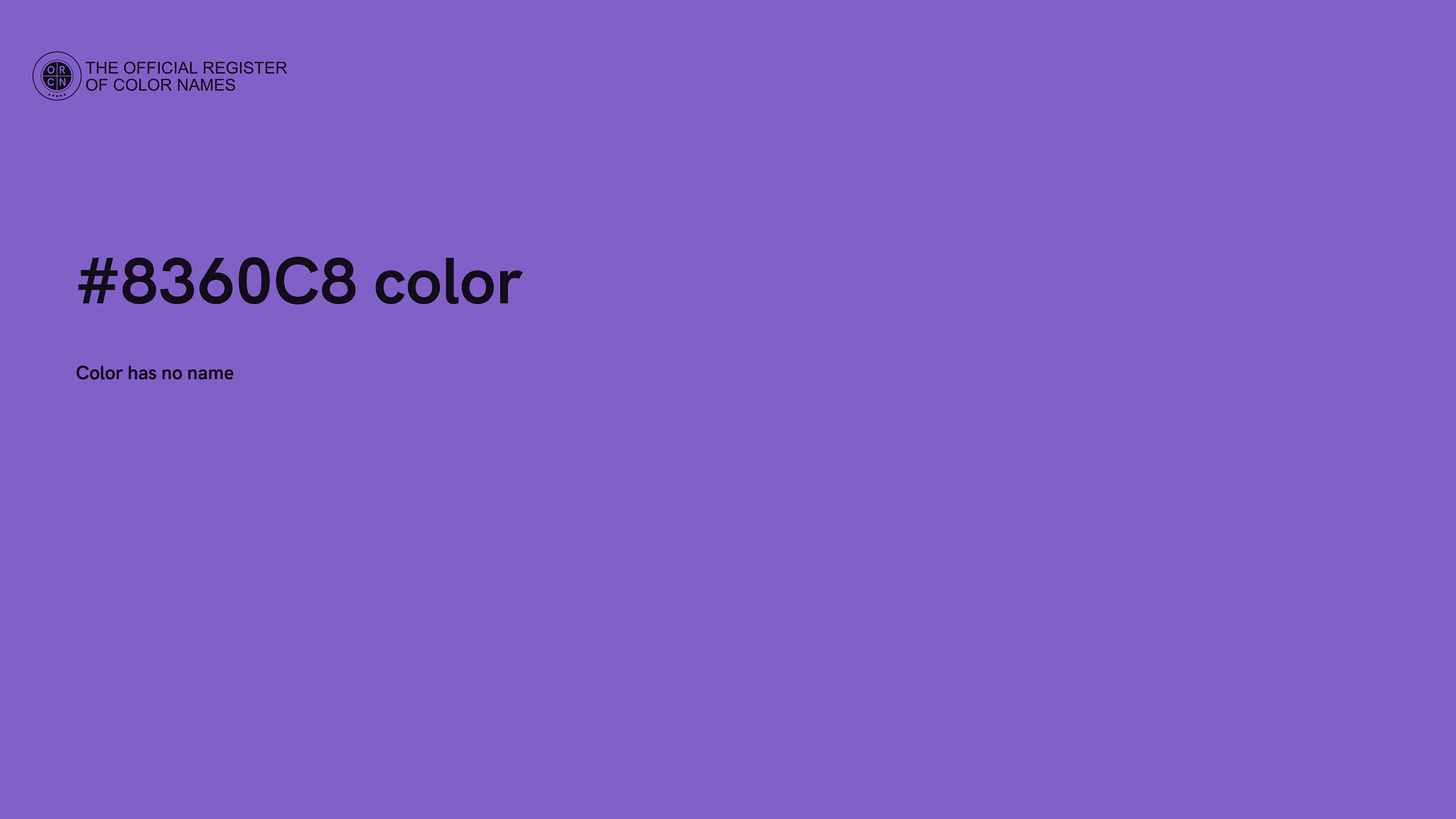 For printing in non digital world, #8360C8 is represented in CMYK as 27 Cyan, 41 Magenta, 0 Yellow, and 22 Black (Key) (C:27 M:41 Y:0 K:22).