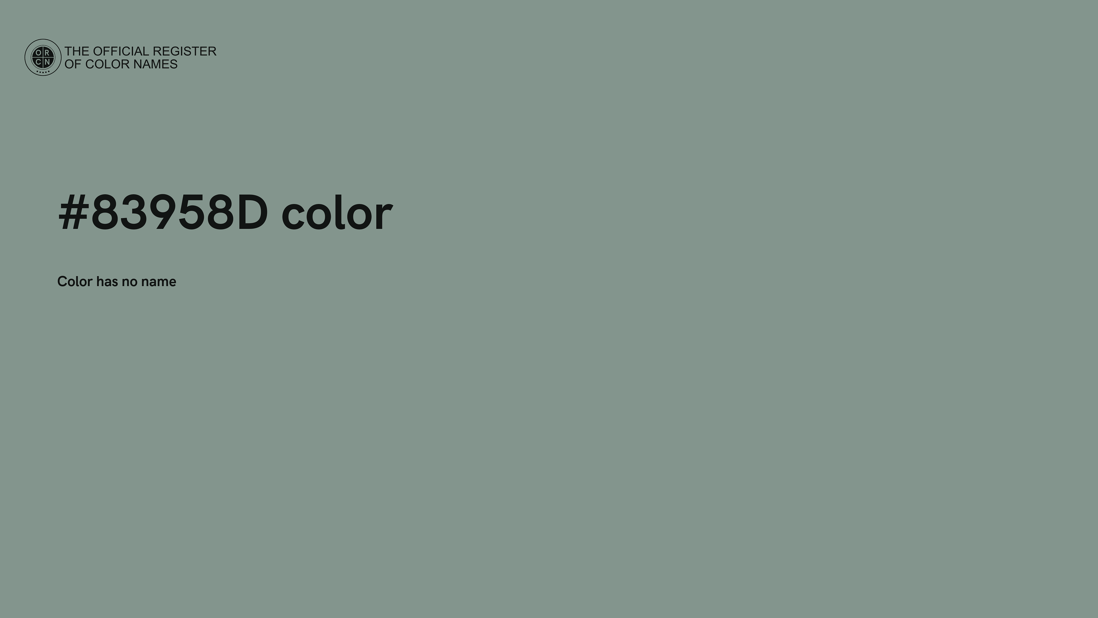 The digital color HEX #83958D belongs to the Spring Green Color Family featuring Desaturated (Saturation Family) and Light (Brightness Family).