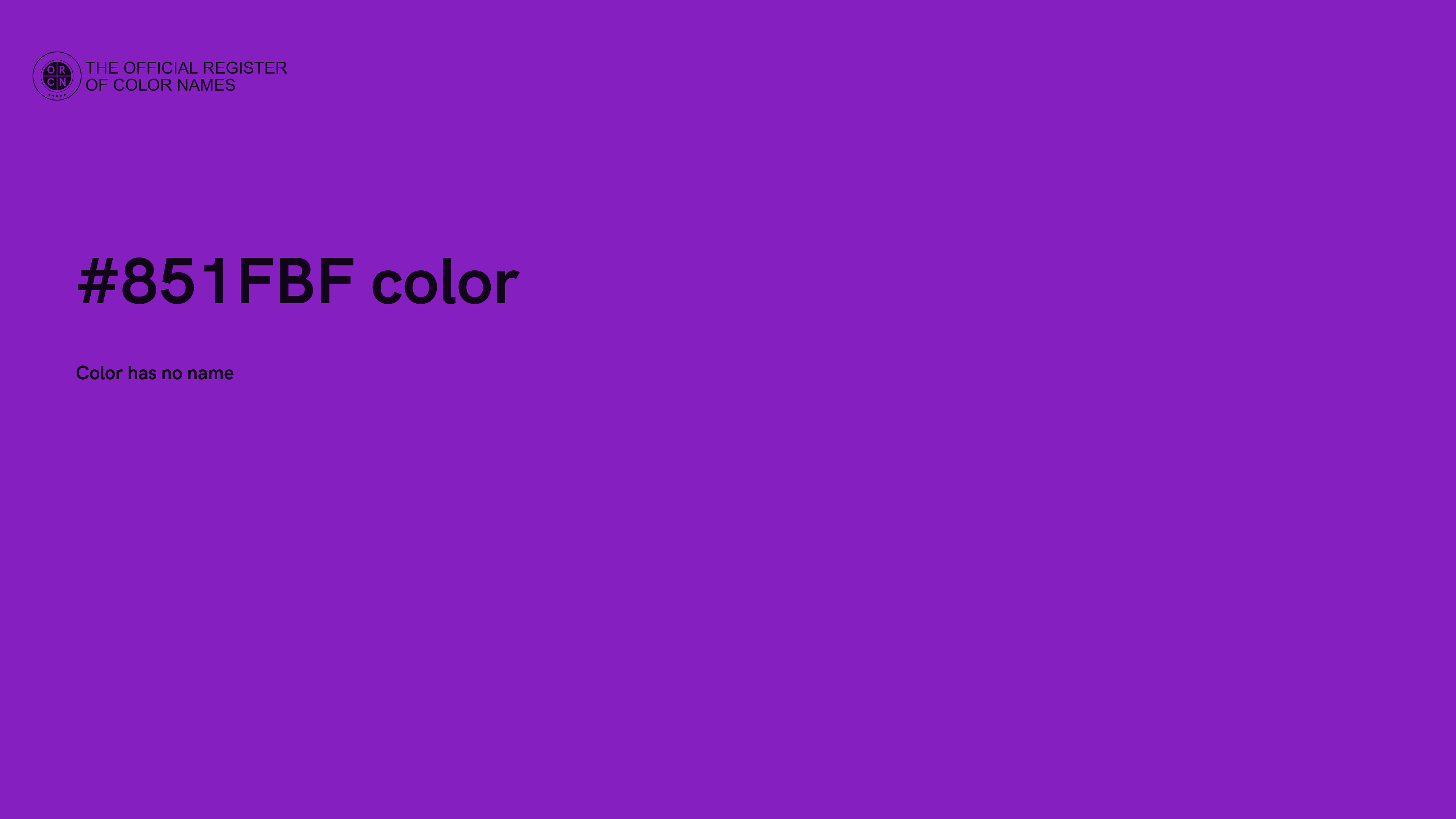 For printing in non digital world, #851FBF is represented in CMYK as 23 Cyan, 63 Magenta, 0 Yellow, and 25 Black (Key) (C:23 M:63 Y:0 K:25).