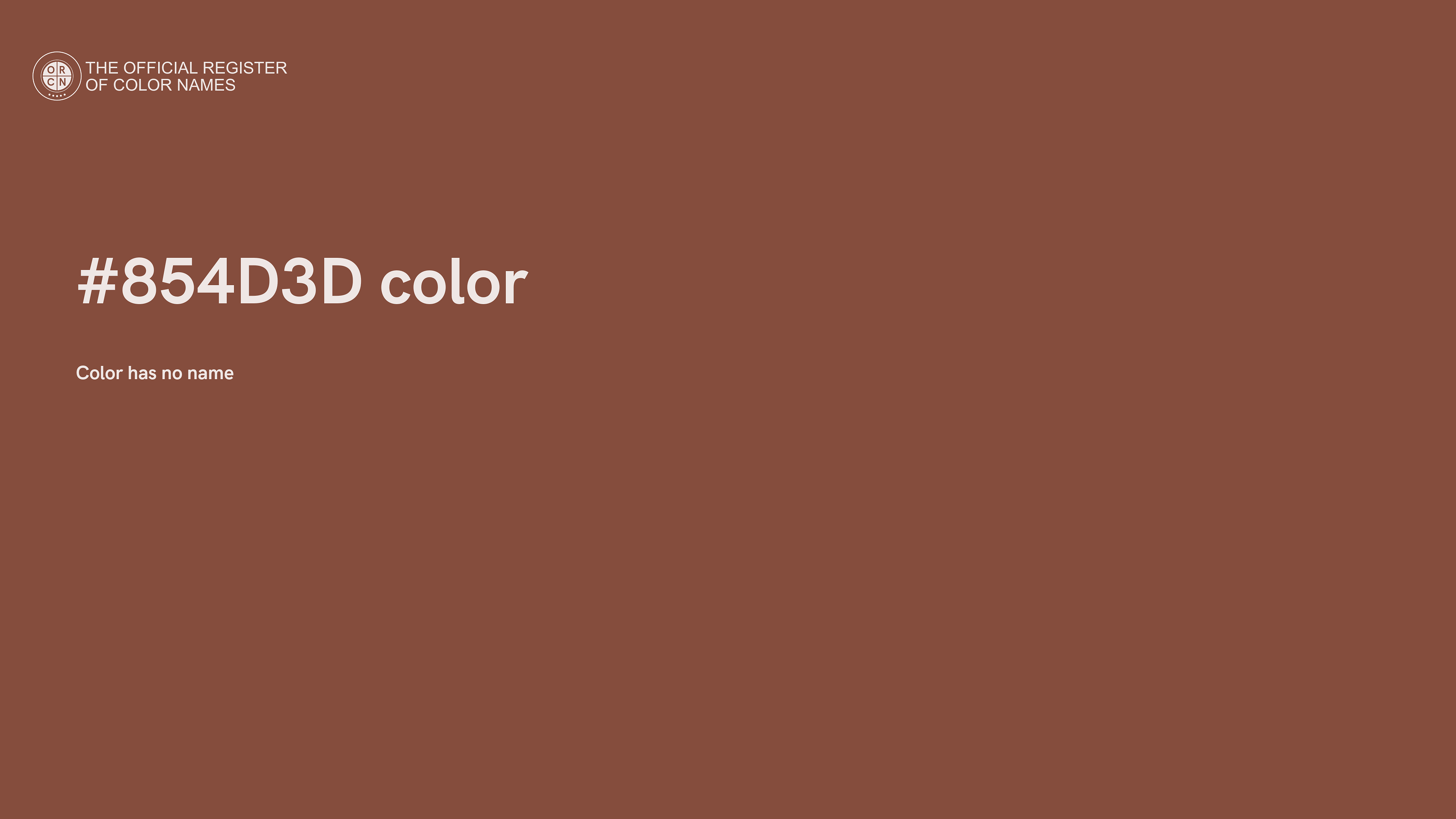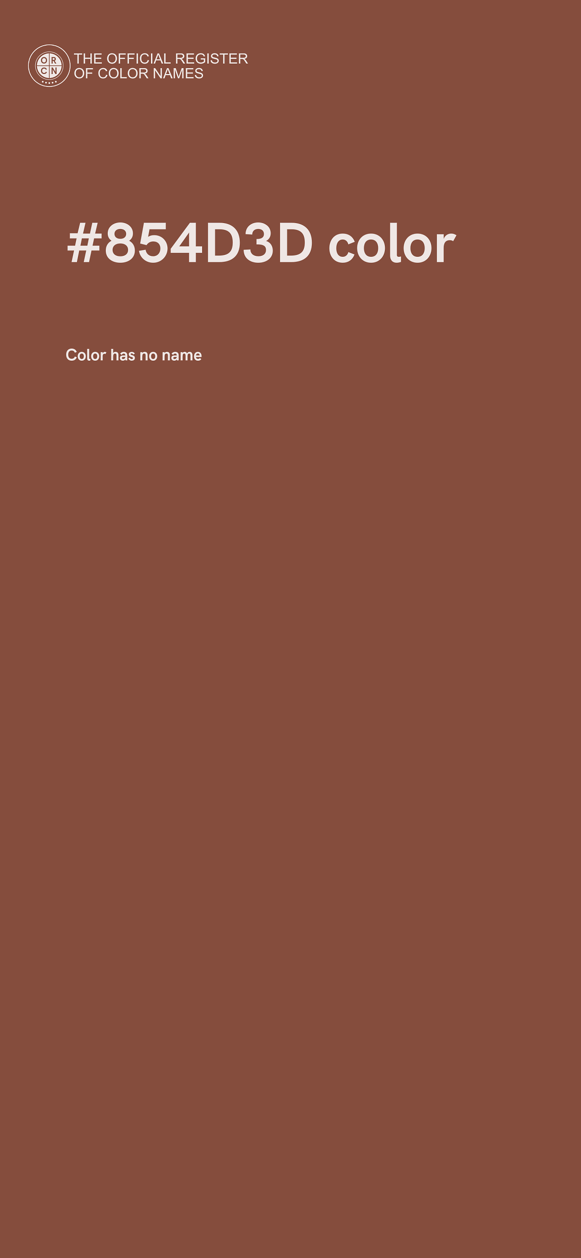 The digital color HEX #854D3D belongs to the Red Color Family featuring Mild Saturation (Saturation Family) and Neutral (Brightness Family).