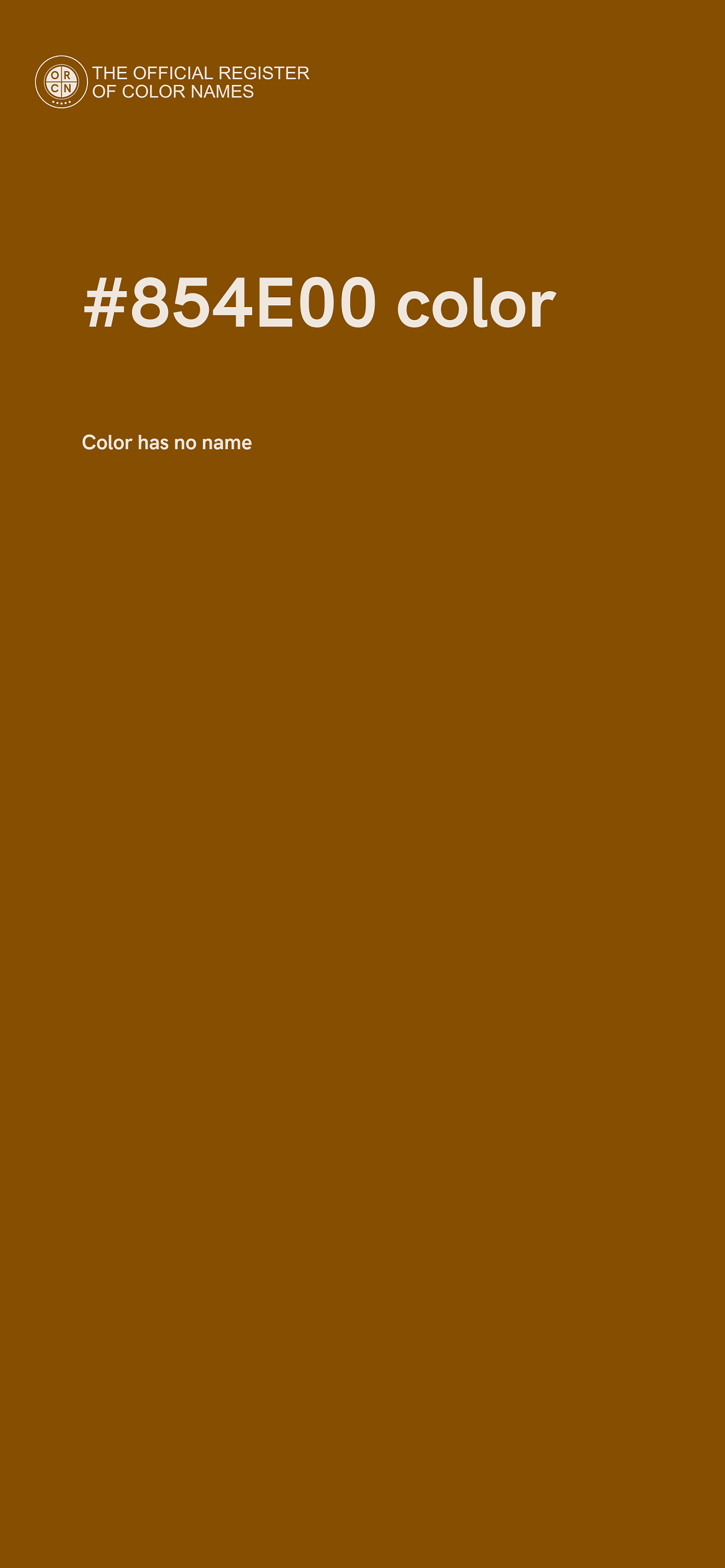 The digital color HEX #854E00 belongs to the Orange Color Family featuring Full Saturation (Saturation Family) and Neutral (Brightness Family).