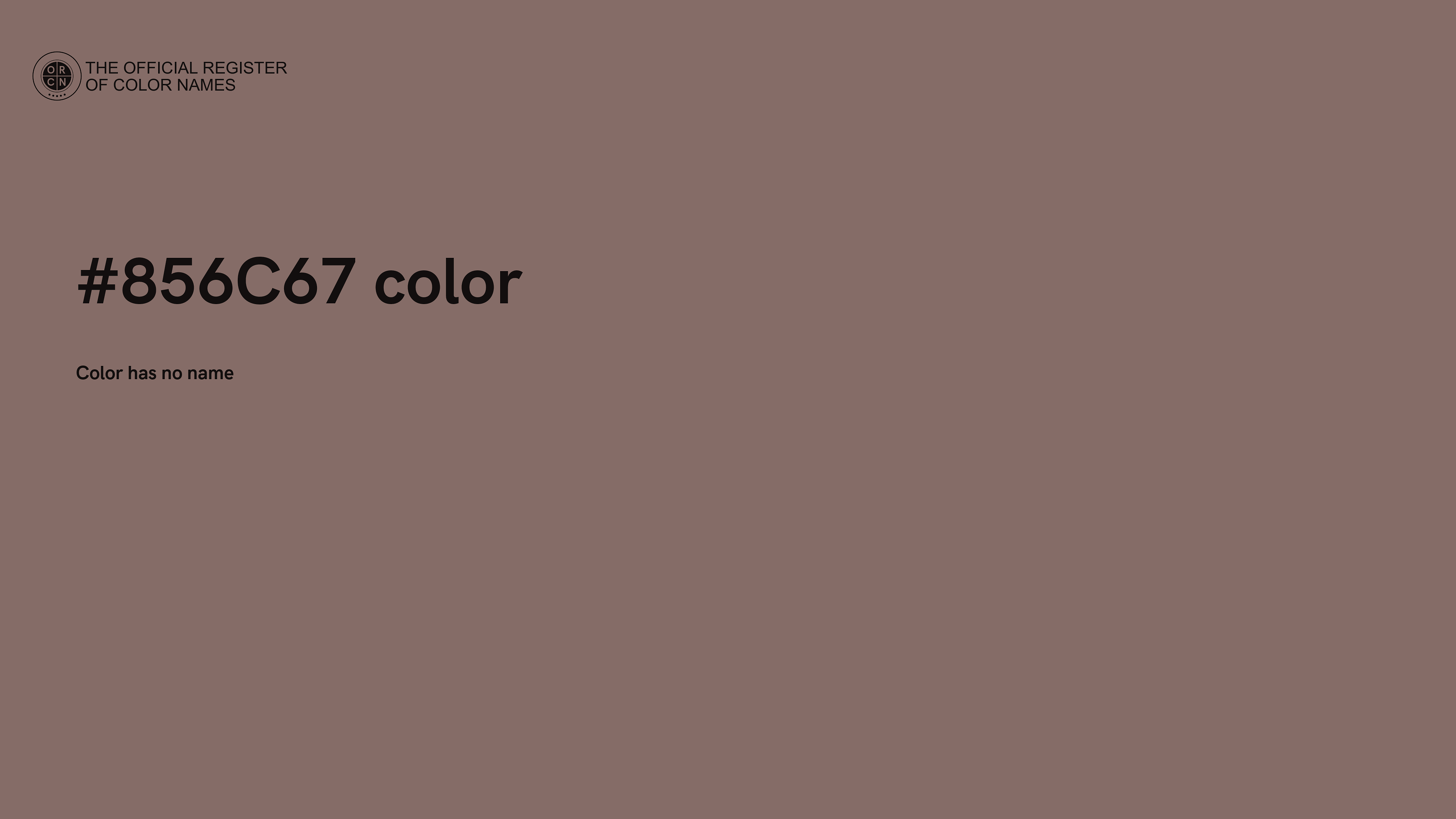 For printing in non digital world, #856C67 is represented in CMYK as 0 Cyan, 10 Magenta, 12 Yellow, and 48 Black (Key) (C:0 M:10 Y:12 K:48).