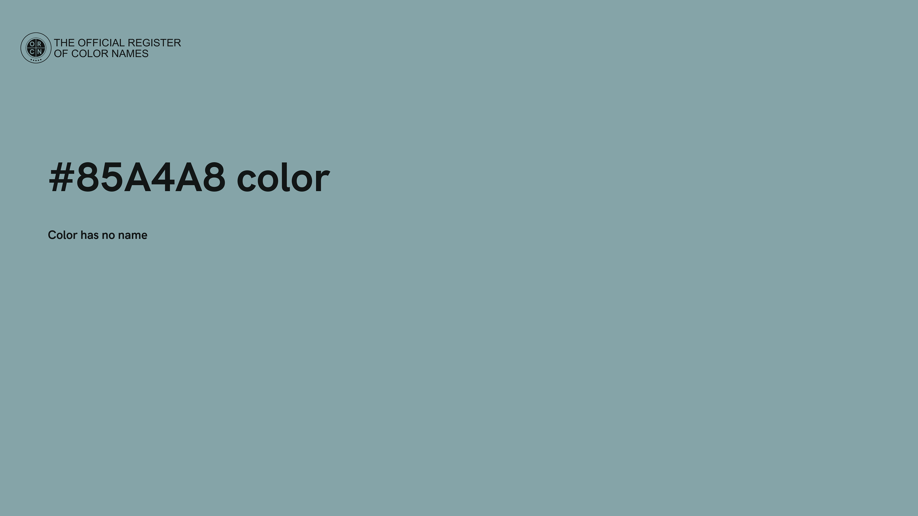 For printing in non digital world, #85A4A8 is represented in CMYK as 14 Cyan, 2 Magenta, 0 Yellow, and 34 Black (Key) (C:14 M:2 Y:0 K:34).