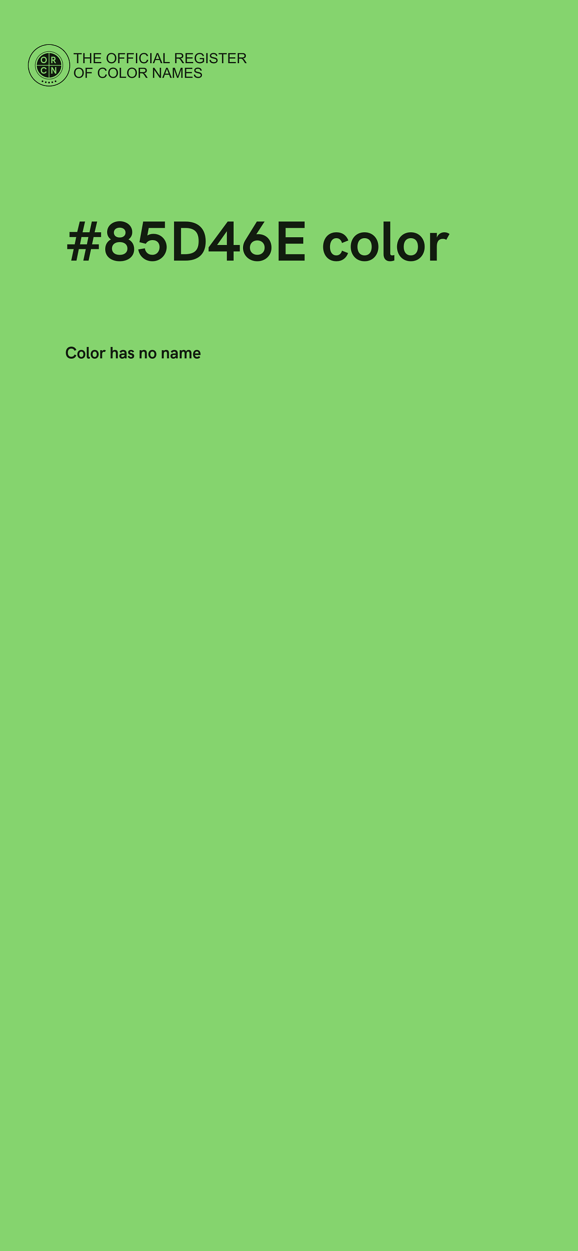 The digital color HEX #85D46E belongs to the Green Color Family featuring Moderate Saturation (Saturation Family) and Very Light (Brightness Family).
