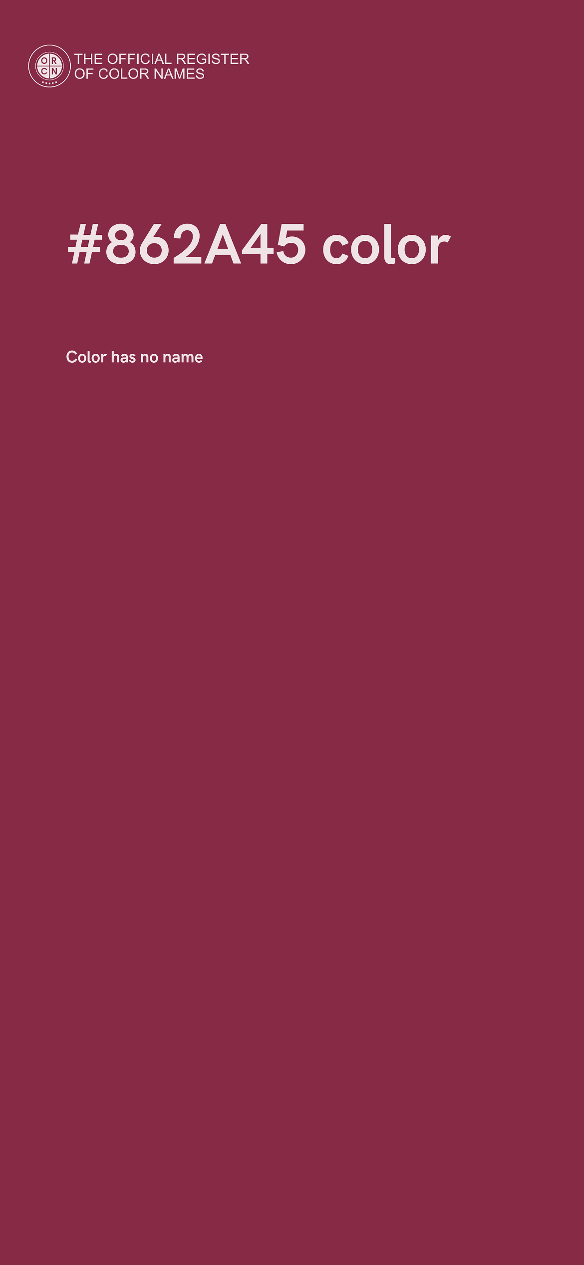For printing in non digital world, #862A45 is represented in CMYK as 0 Cyan, 36 Magenta, 25 Yellow, and 47 Black (Key) (C:0 M:36 Y:25 K:47).