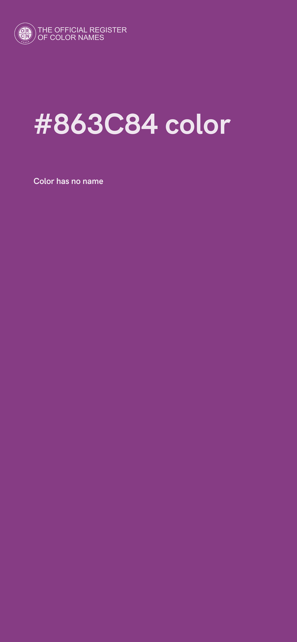 The digital color HEX #863C84 belongs to the Magenta Color Family featuring Mild Saturation (Saturation Family) and Neutral (Brightness Family).
