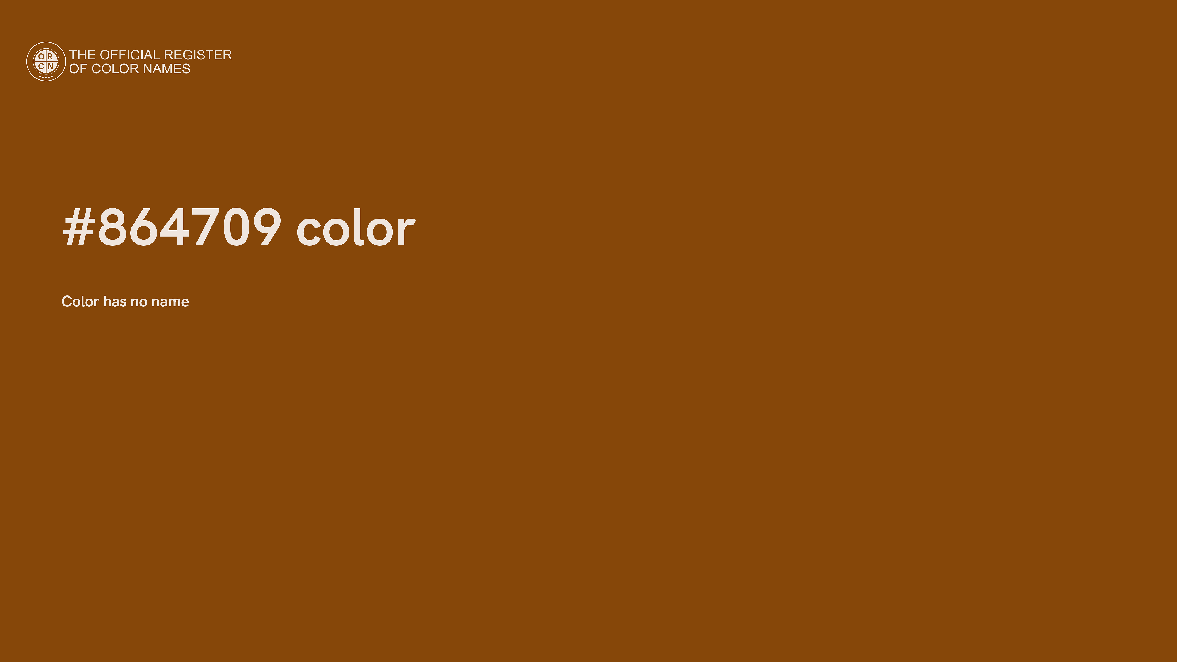 The digital color HEX #864709 belongs to the Orange Color Family featuring Full Saturation (Saturation Family) and Neutral (Brightness Family).