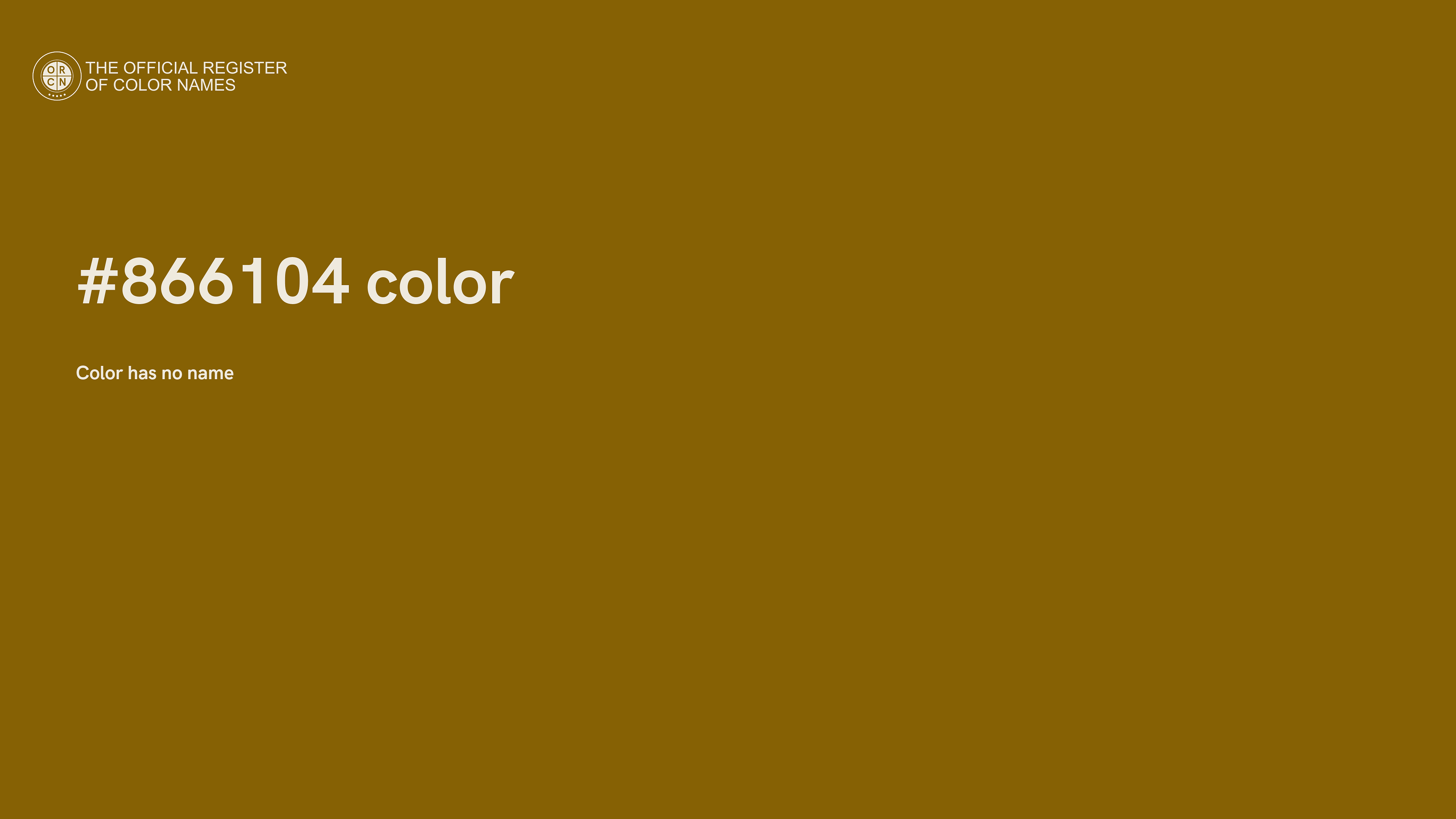 The digital color HEX #866104 belongs to the Orange Color Family featuring Full Saturation (Saturation Family) and Neutral (Brightness Family).