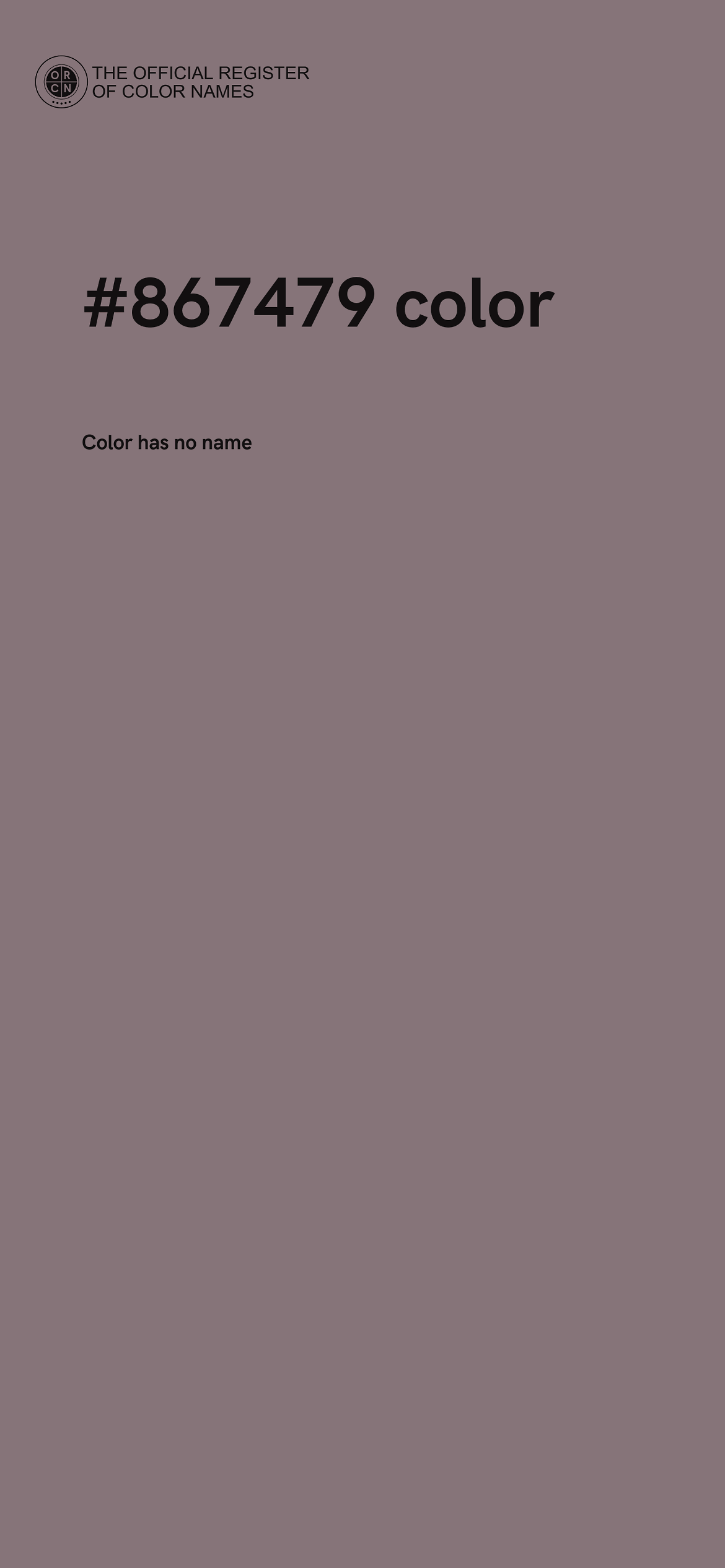 The digital color HEX #867479 belongs to the Rose Color Family featuring Desaturated (Saturation Family) and Light (Brightness Family).