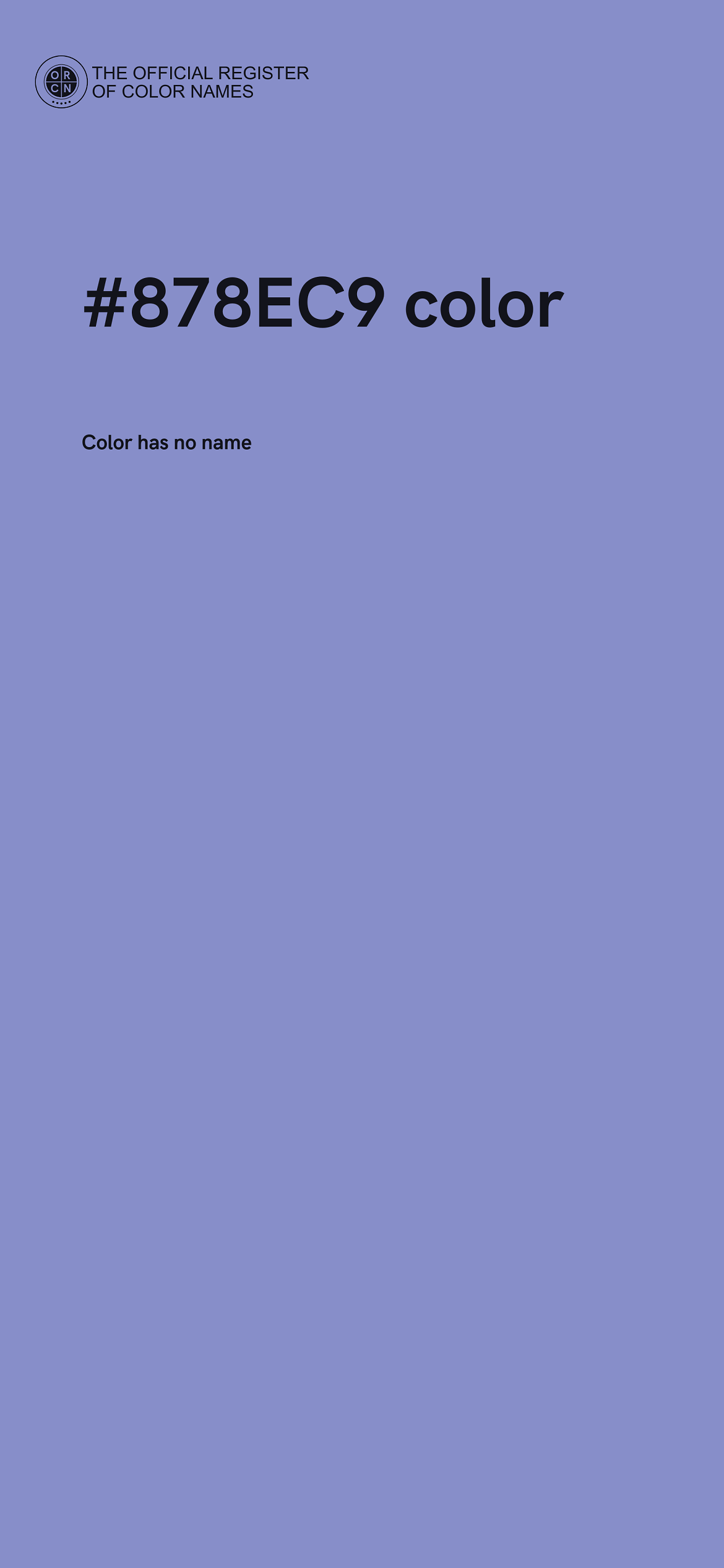 For printing in non digital world, #878EC9 is represented in CMYK as 26 Cyan, 23 Magenta, 0 Yellow, and 21 Black (Key) (C:26 M:23 Y:0 K:21).