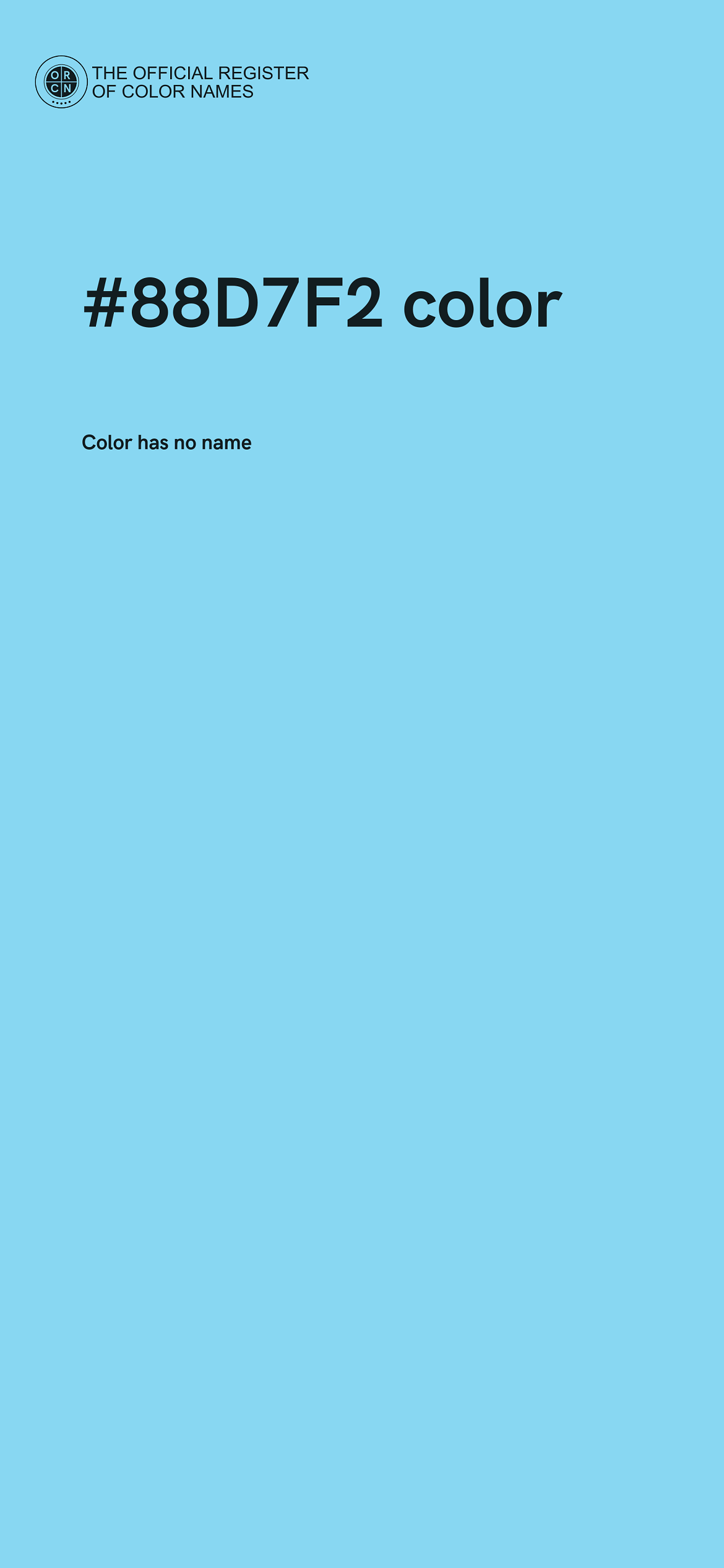 The digital color HEX #88D7F2 belongs to the Azure Color Family featuring High Saturation (Saturation Family) and Very Light (Brightness Family).