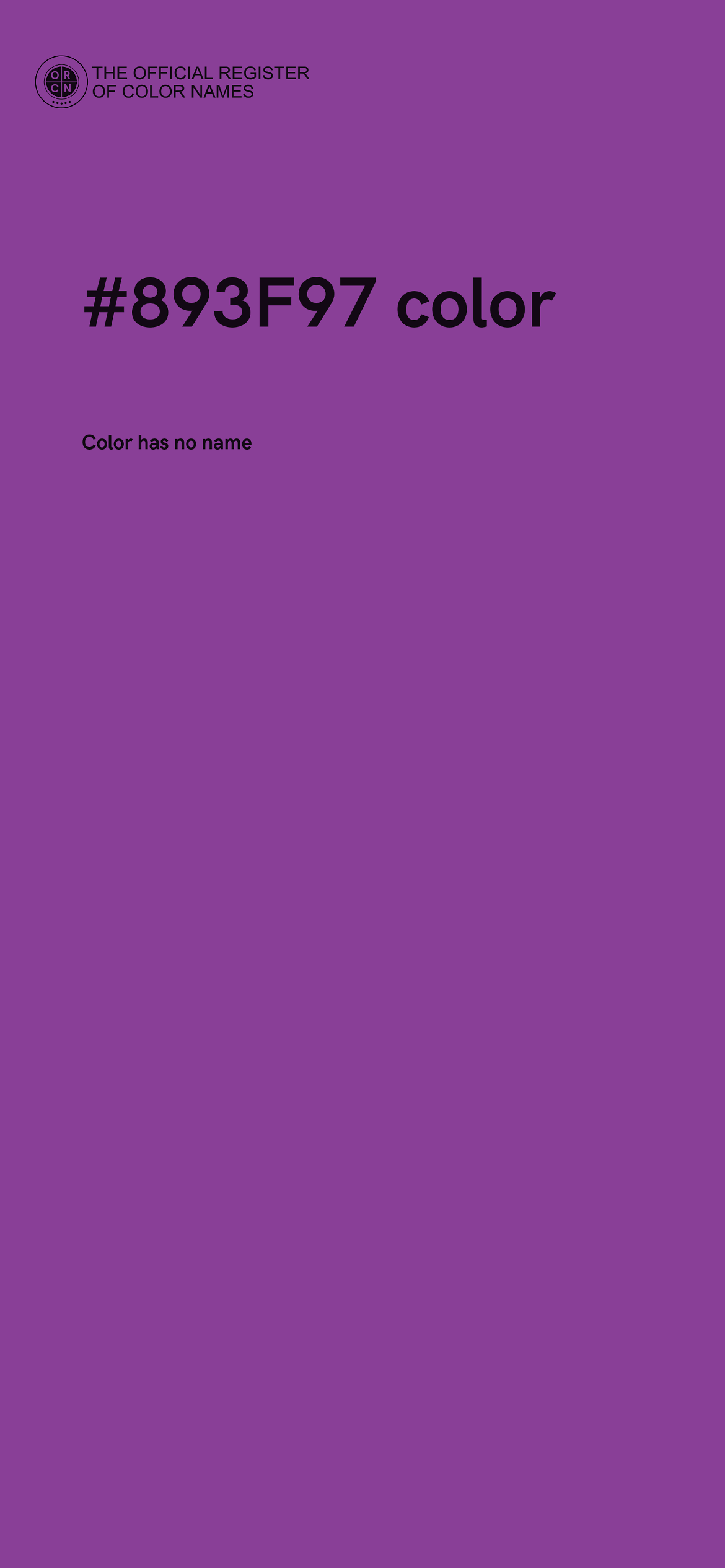 The digital color HEX #893F97 belongs to the Magenta Color Family featuring Moderate Saturation (Saturation Family) and Light (Brightness Family).