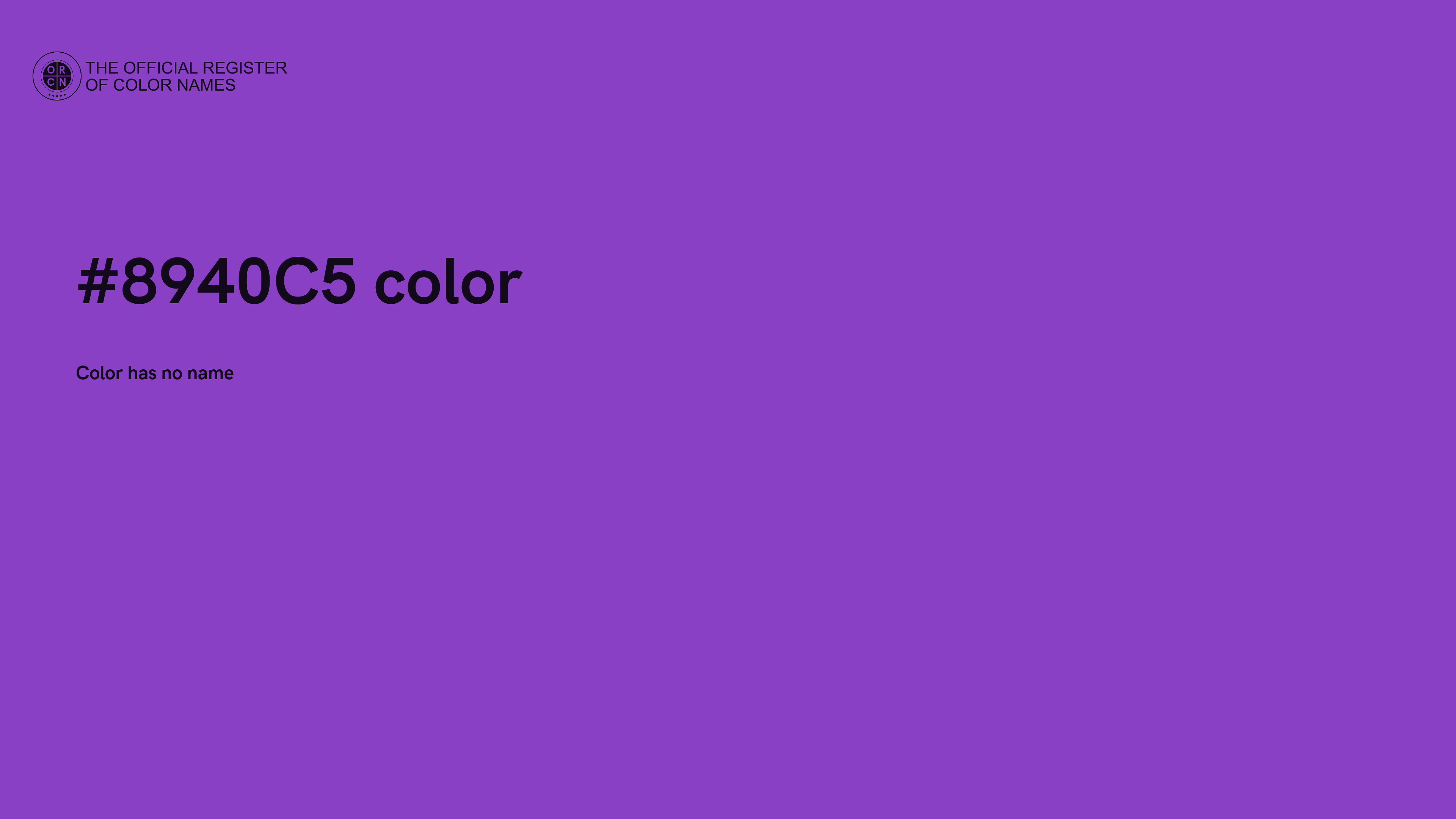 For printing in non digital world, #8940C5 is represented in CMYK as 24 Cyan, 52 Magenta, 0 Yellow, and 23 Black (Key) (C:24 M:52 Y:0 K:23).