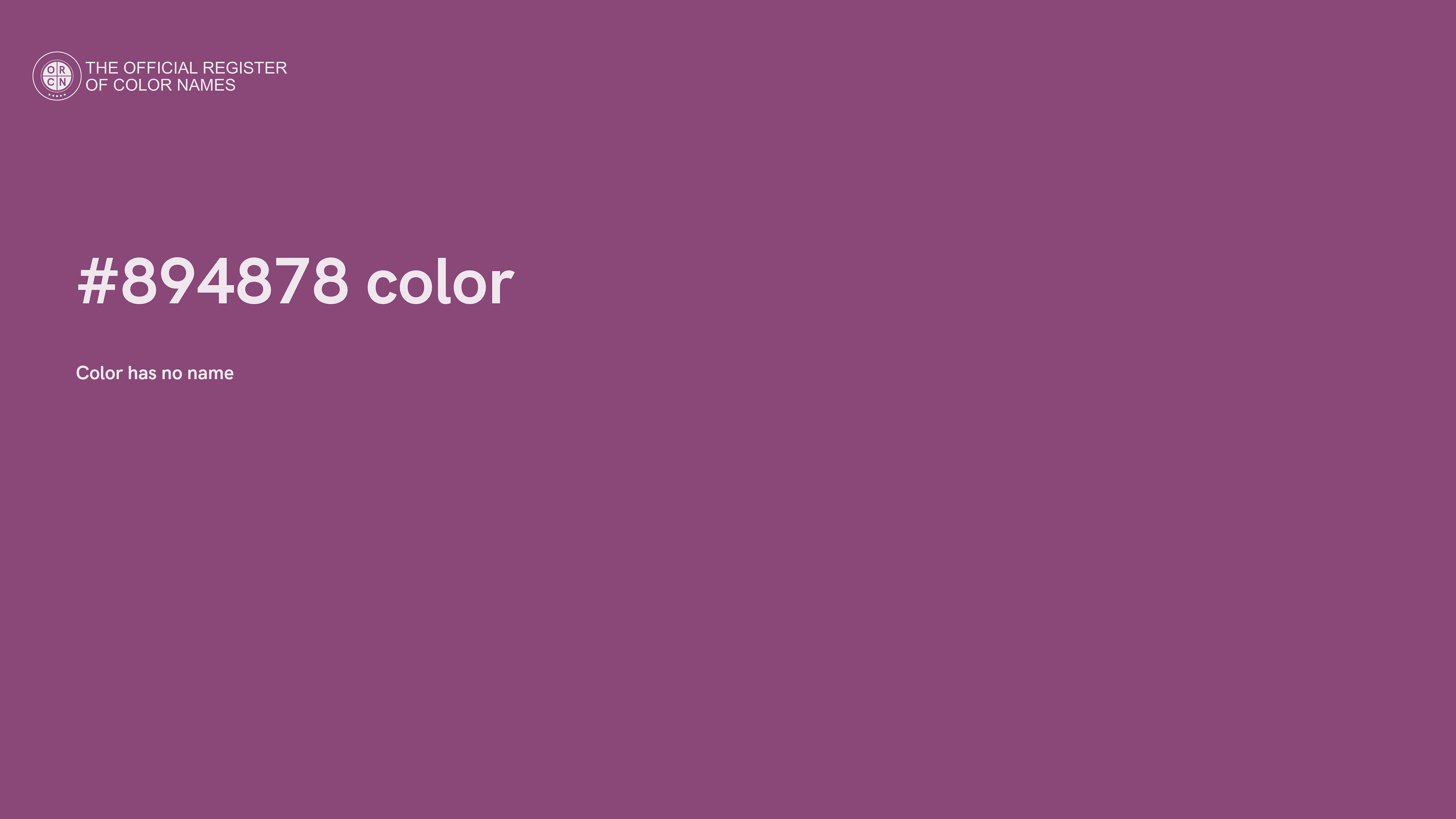 The digital color HEX #894878 belongs to the Rose Color Family featuring Mild Saturation (Saturation Family) and Light (Brightness Family).