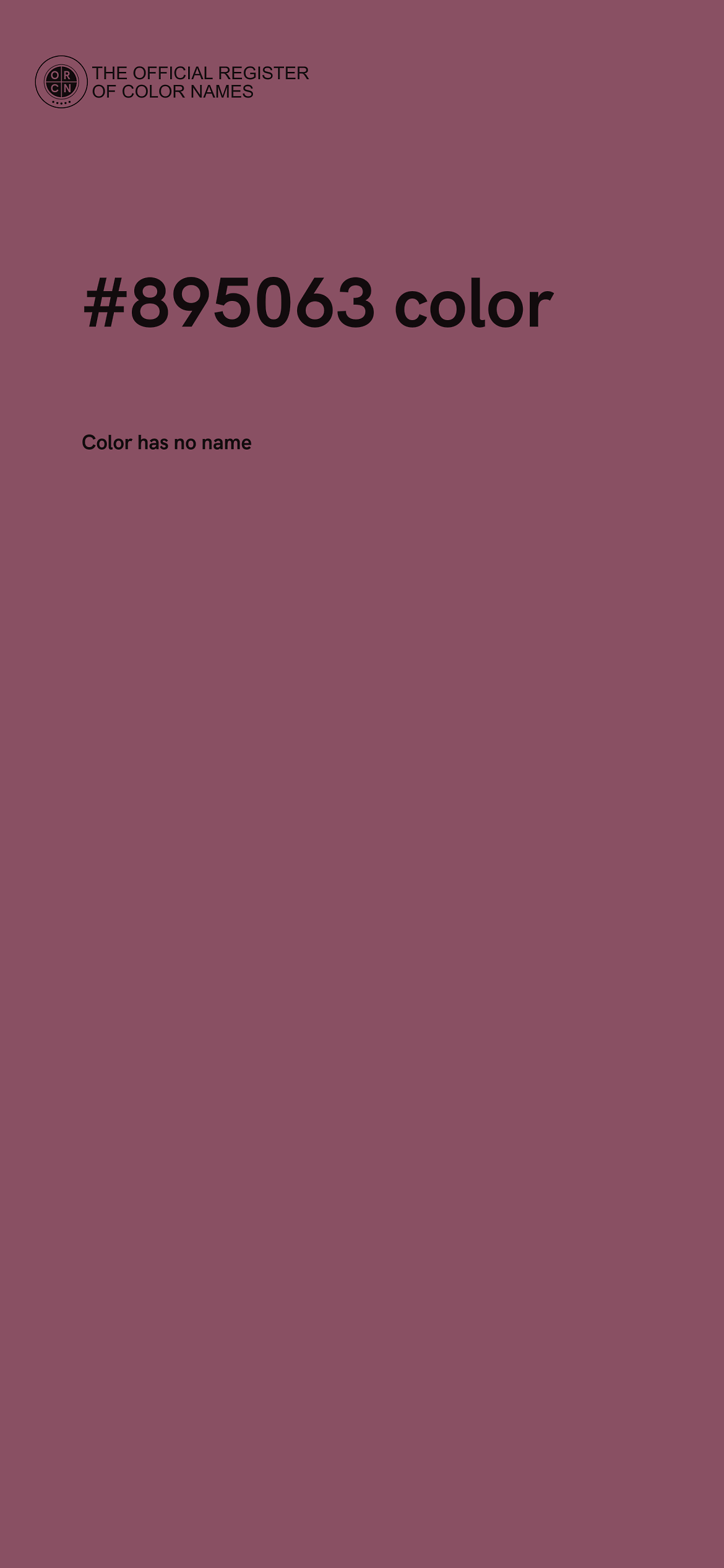 For printing in non digital world, #895063 is represented in CMYK as 0 Cyan, 22 Magenta, 15 Yellow, and 46 Black (Key) (C:0 M:22 Y:15 K:46).