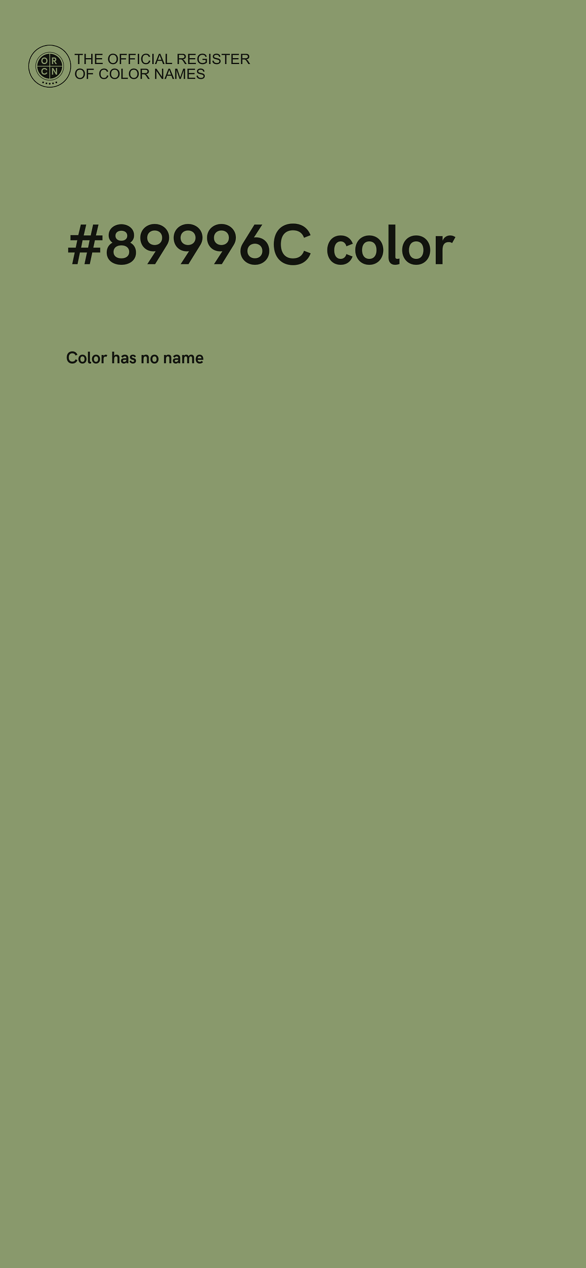 The digital color HEX #89996C belongs to the Chartreuse Color Family featuring Low Saturation (Saturation Family) and Light (Brightness Family).
