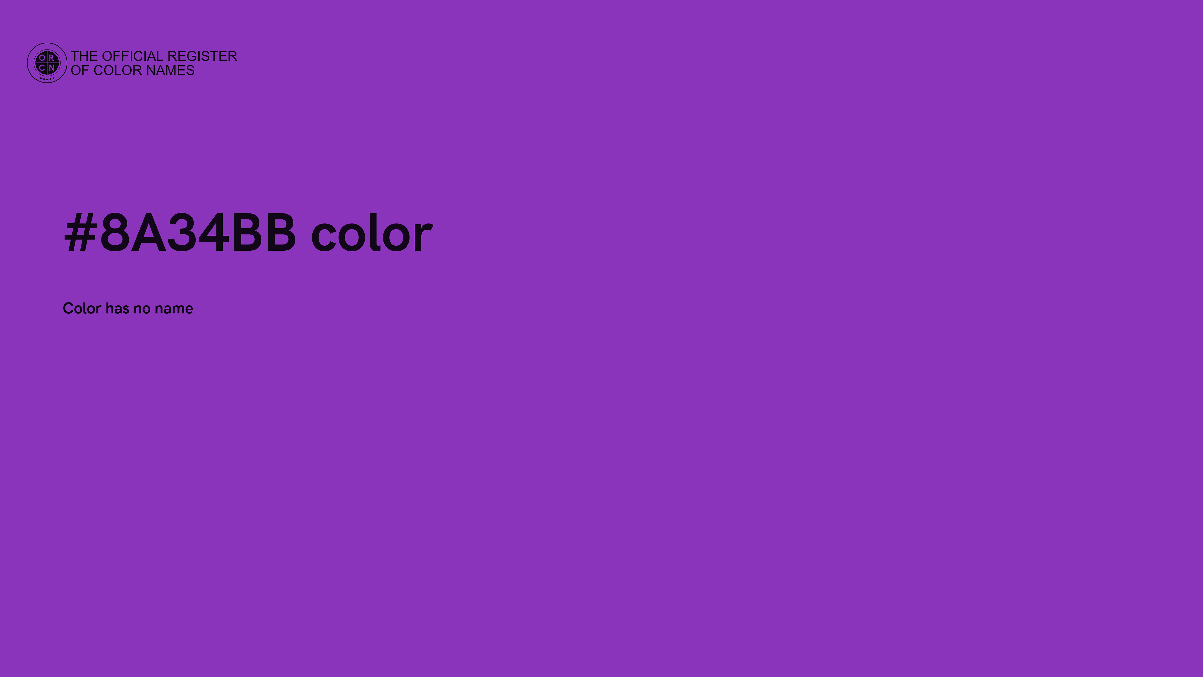 The digital color HEX #8A34BB belongs to the Violet Color Family featuring Moderate Saturation (Saturation Family) and Light (Brightness Family).