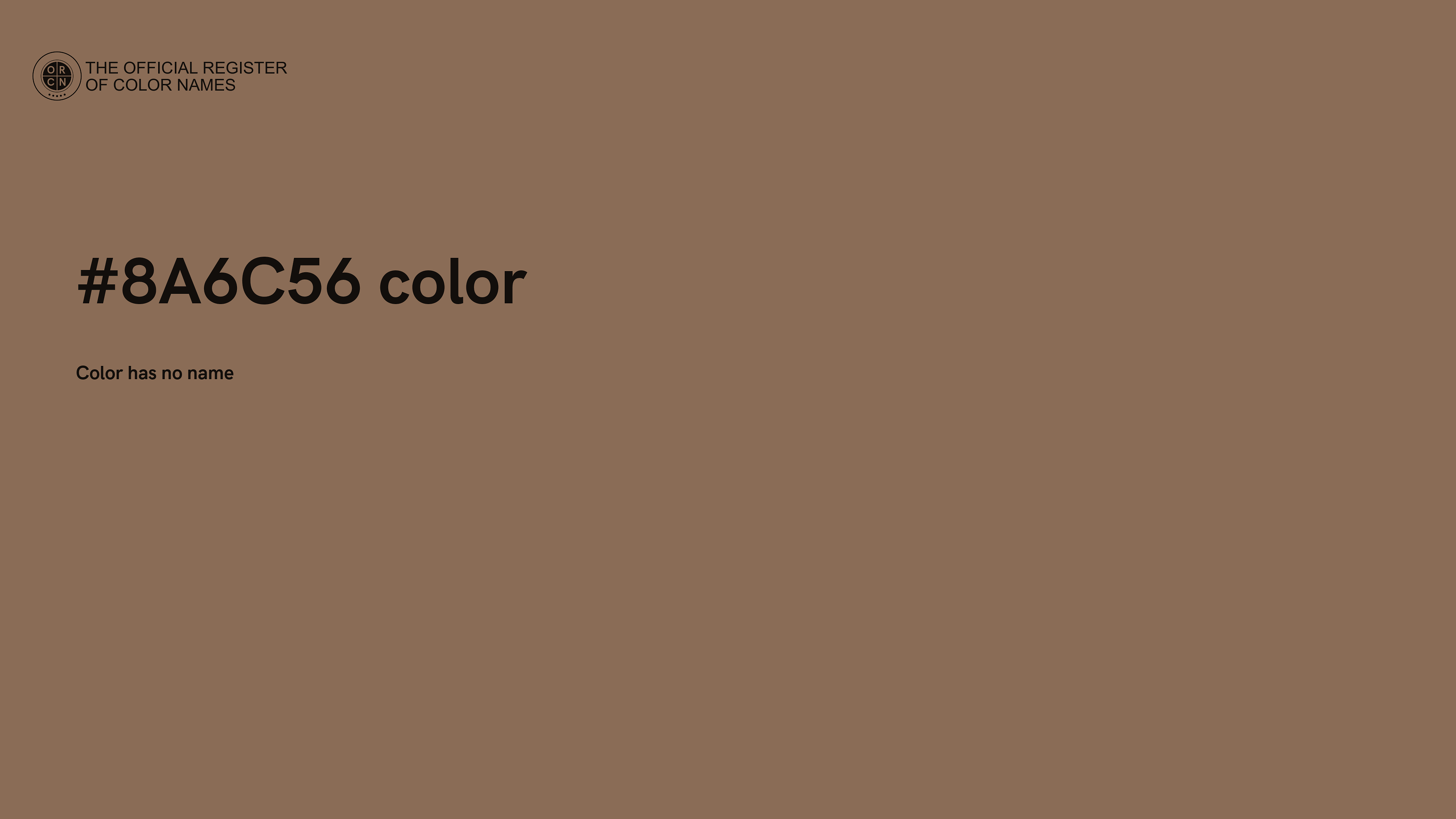 For printing in non digital world, #8A6C56 is represented in CMYK as 0 Cyan, 12 Magenta, 20 Yellow, and 46 Black (Key) (C:0 M:12 Y:20 K:46).