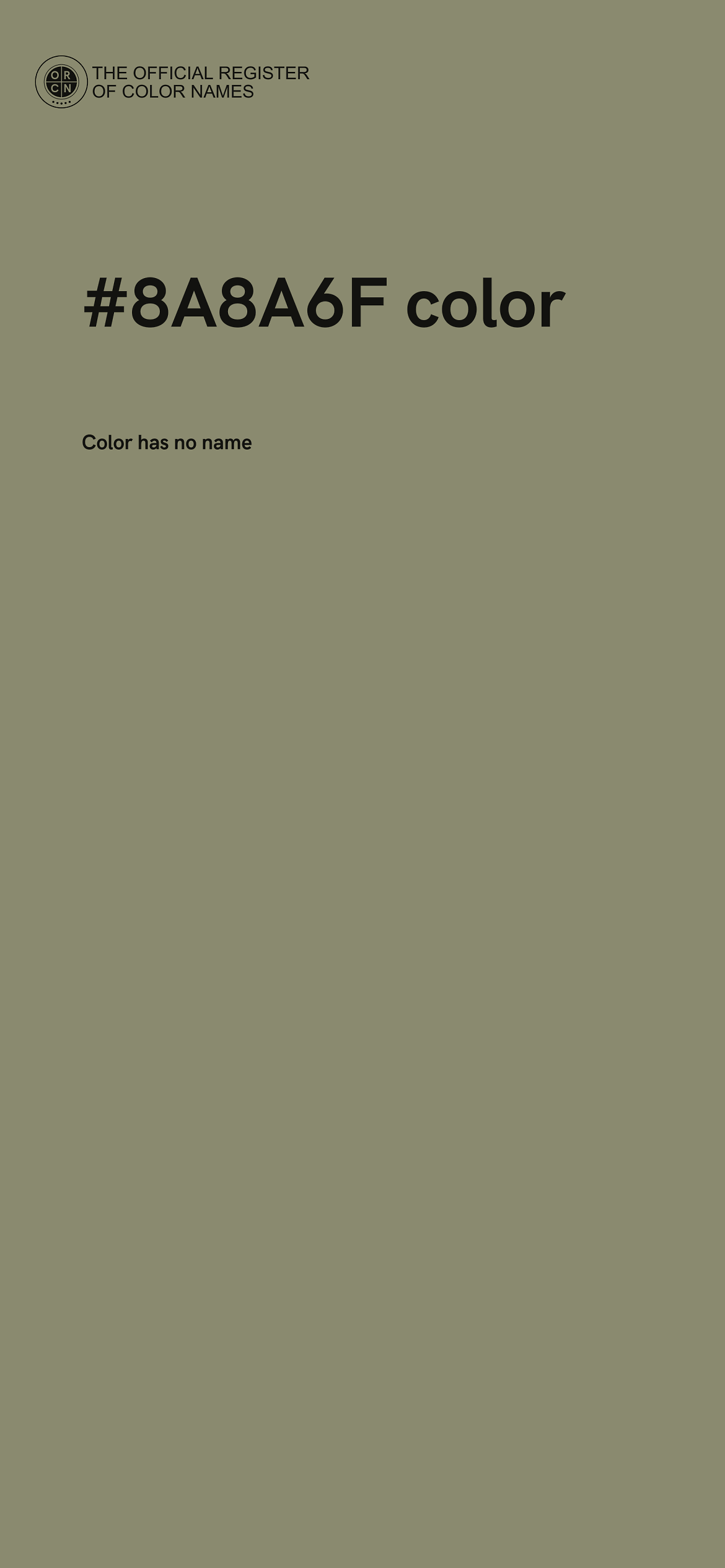 For printing in non digital world, #8A8A6F is represented in CMYK as 0 Cyan, 0 Magenta, 11 Yellow, and 46 Black (Key) (C:0 M:0 Y:11 K:46).