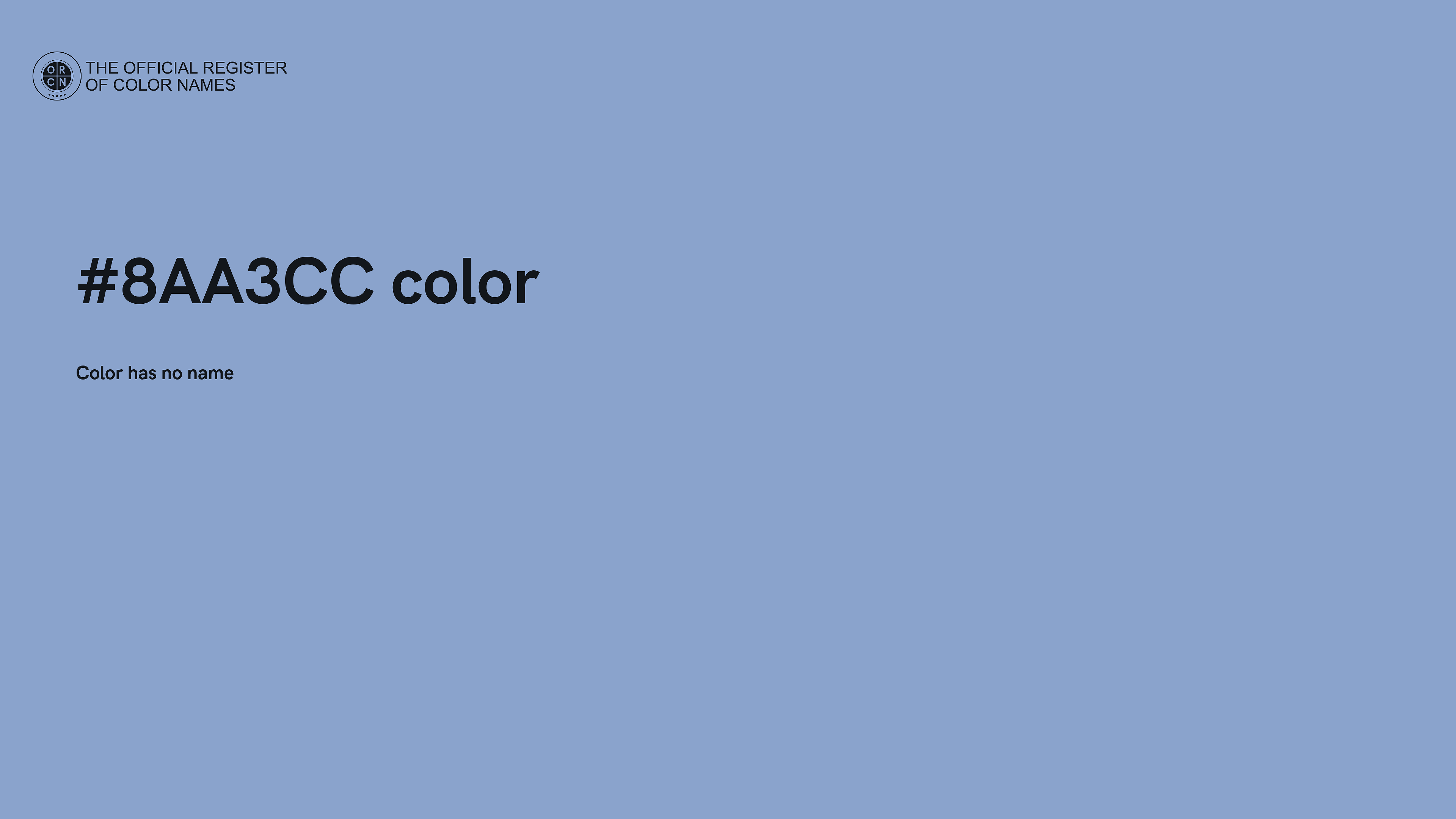 For printing in non digital world, #8AA3CC is represented in CMYK as 26 Cyan, 16 Magenta, 0 Yellow, and 20 Black (Key) (C:26 M:16 Y:0 K:20).