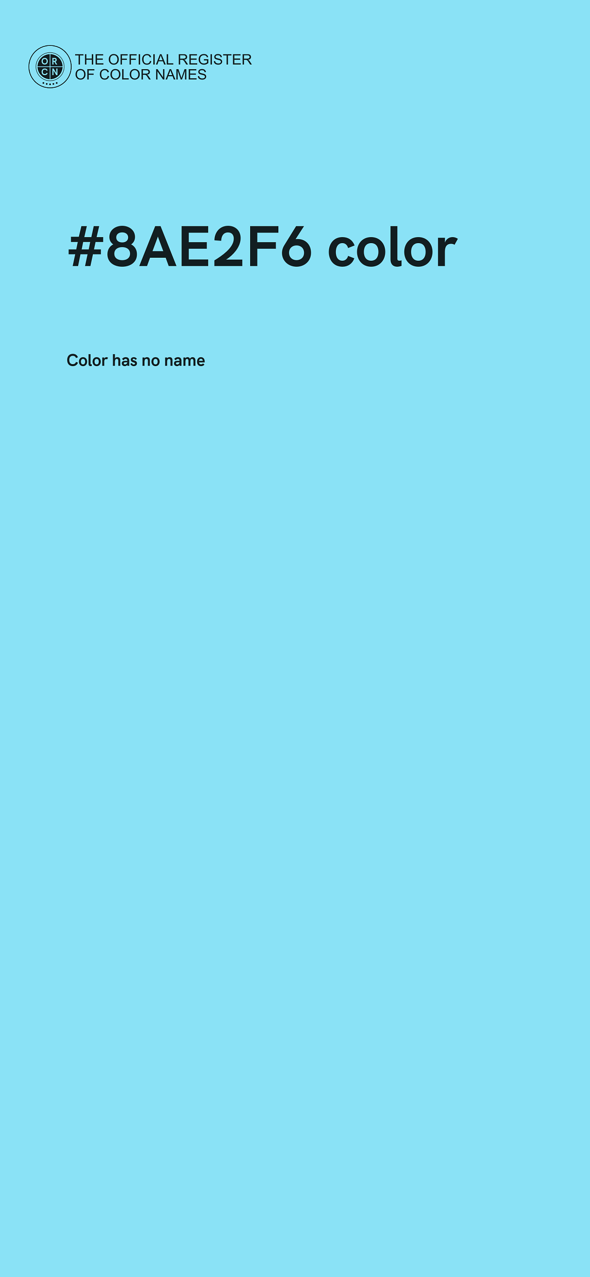 The digital color HEX #8AE2F6 belongs to the Cyan Color Family featuring Full Saturation (Saturation Family) and Very Light (Brightness Family).
