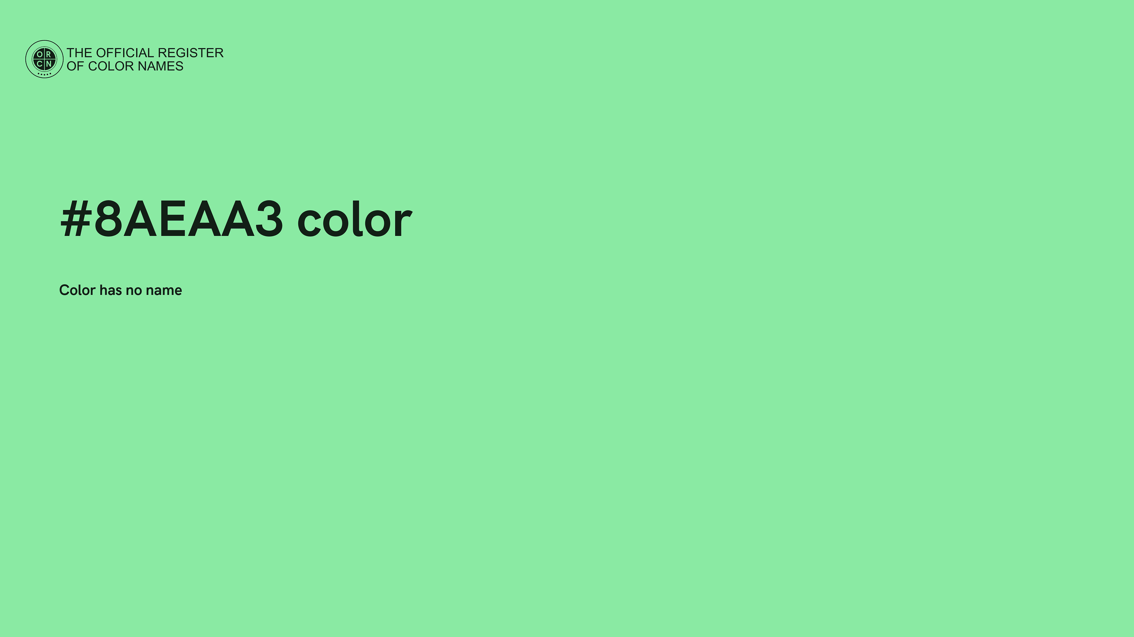 The digital color HEX #8AEAA3 belongs to the Spring Green Color Family featuring High Saturation (Saturation Family) and Very Light (Brightness Family).