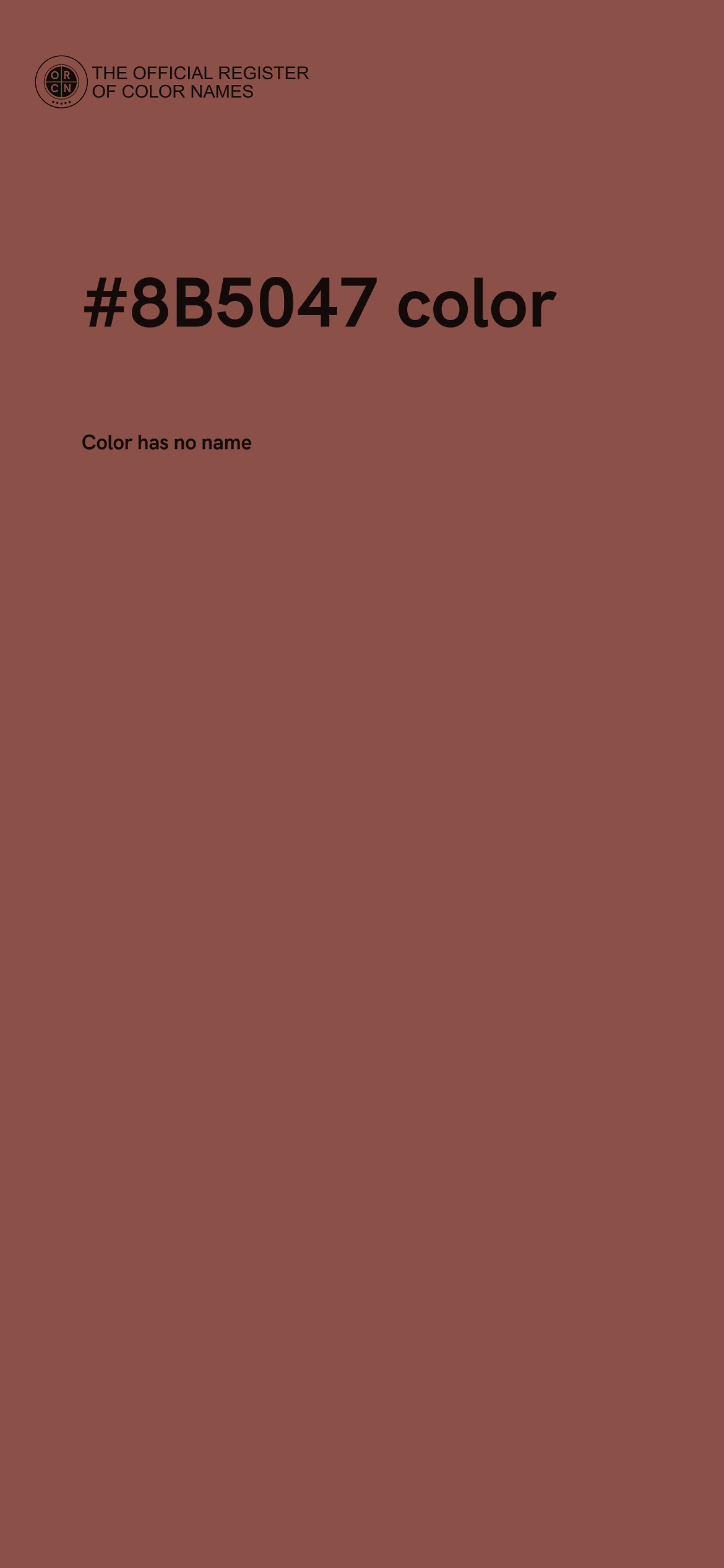 The digital color HEX #8B5047 belongs to the Red Color Family featuring Mild Saturation (Saturation Family) and Light (Brightness Family).