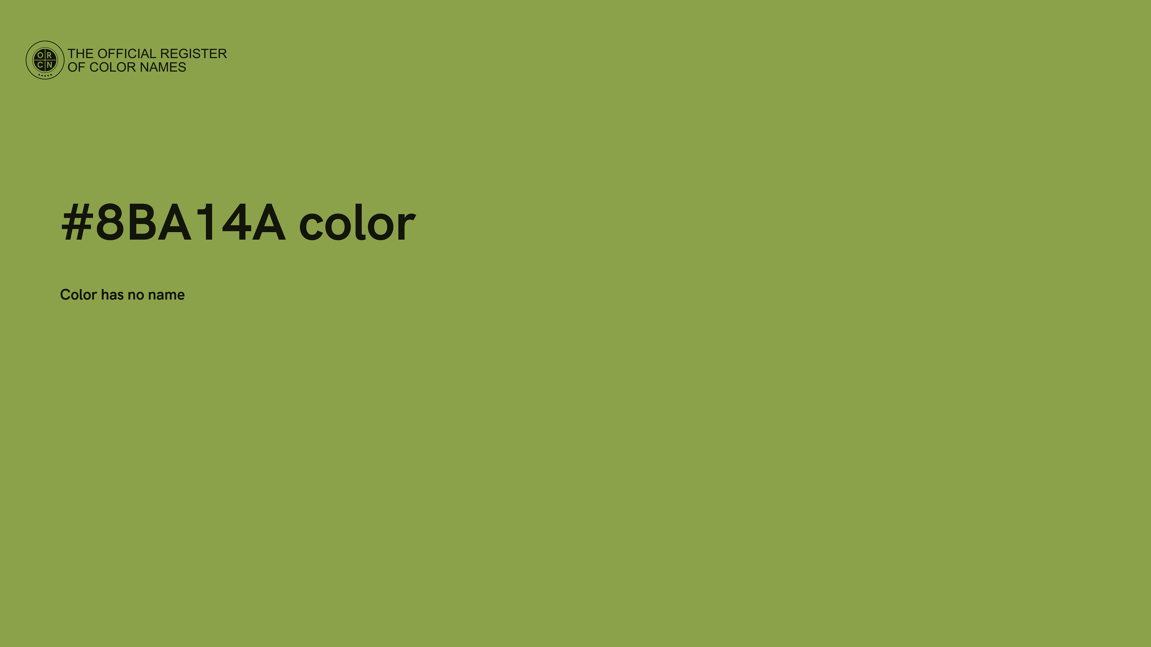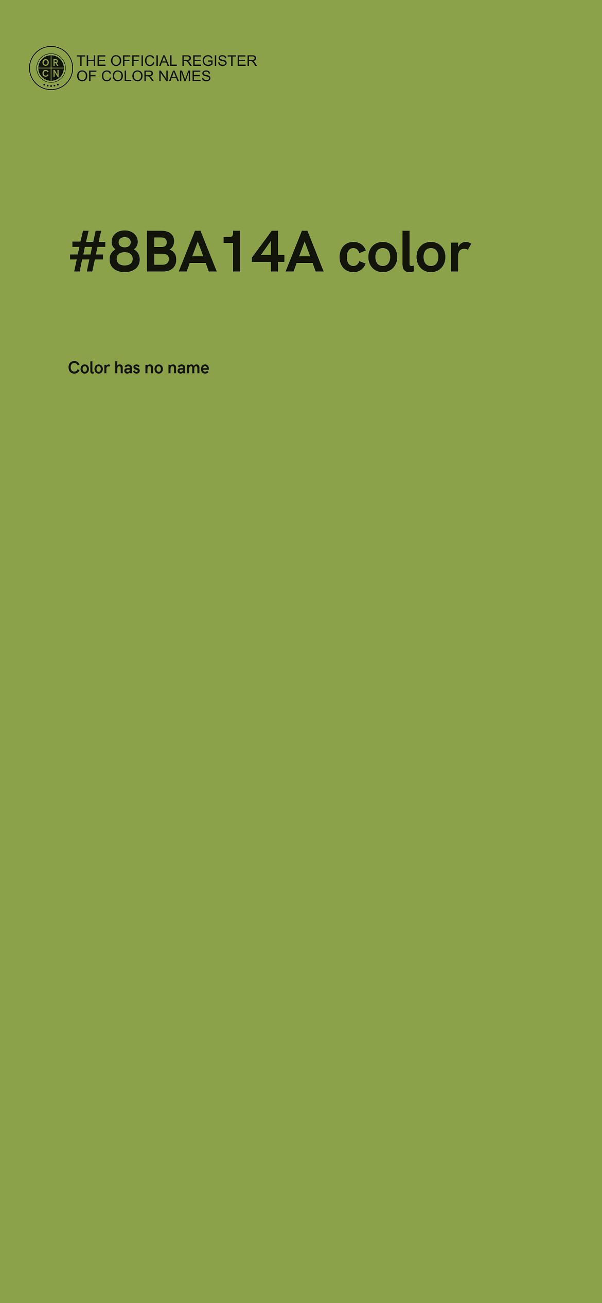 The digital color HEX #8BA14A belongs to the Chartreuse Color Family featuring Mild Saturation (Saturation Family) and Light (Brightness Family).