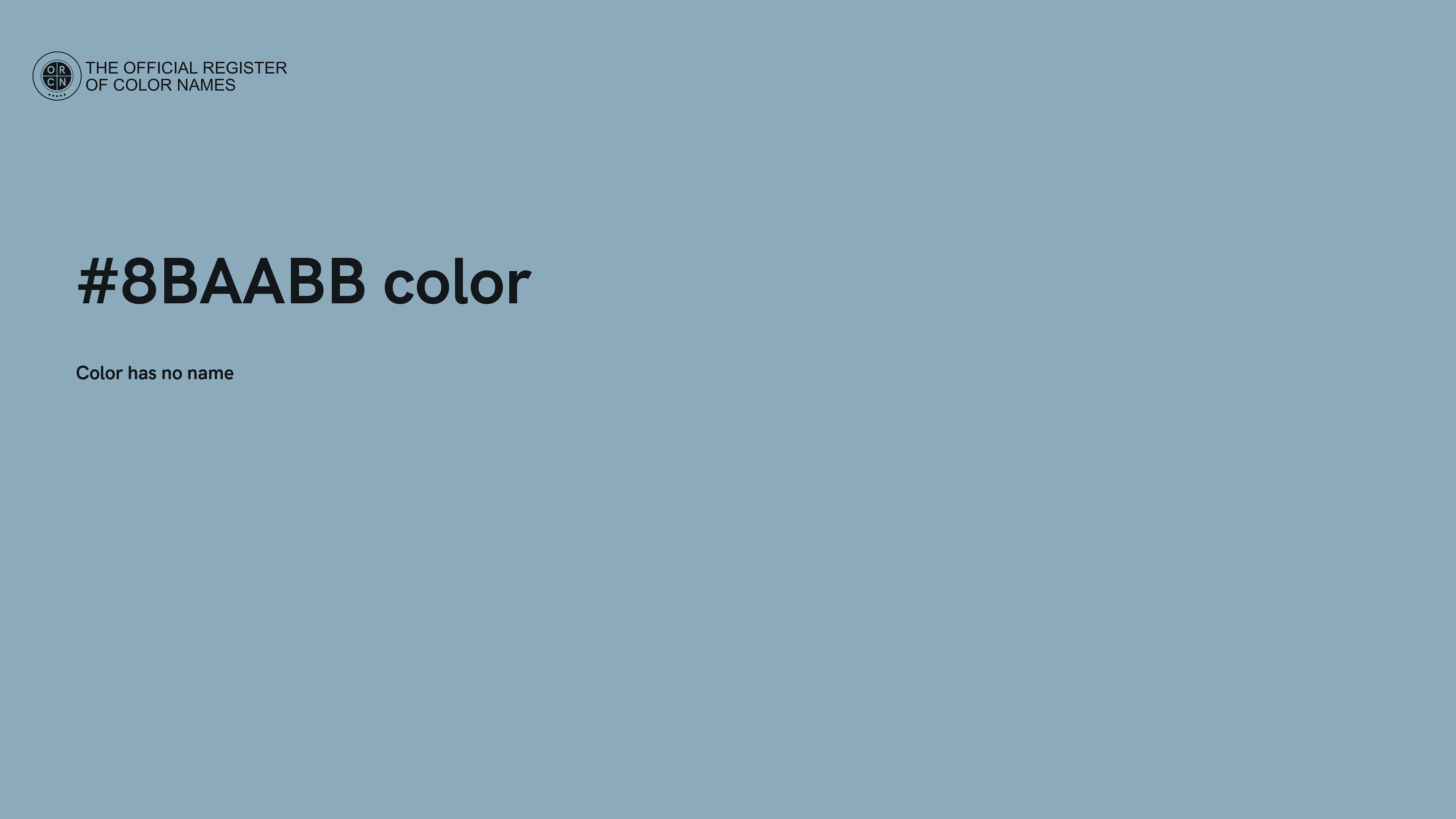 The digital color HEX #8BAABB belongs to the Azure Color Family featuring Mild Saturation (Saturation Family) and Very Light (Brightness Family).