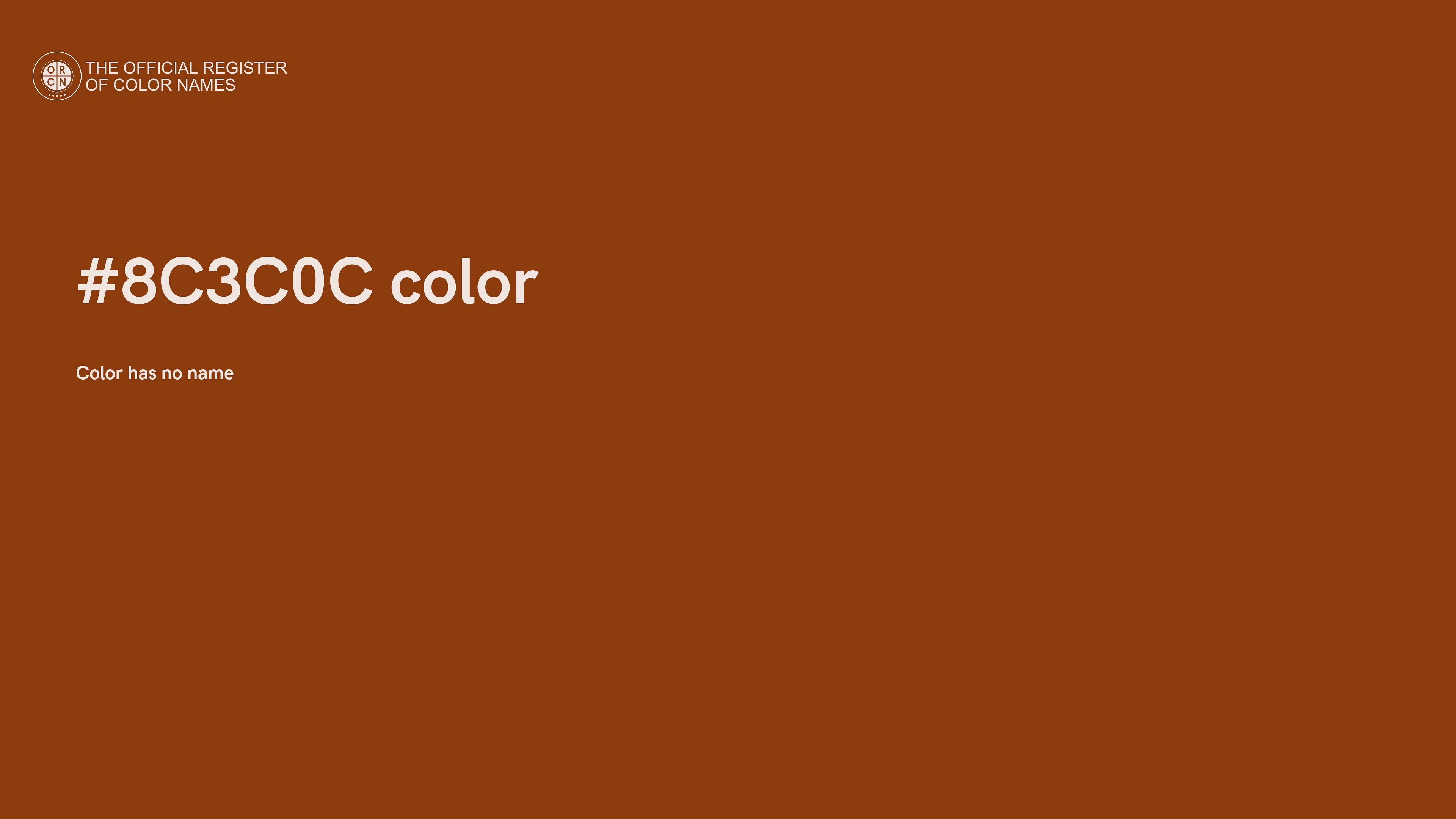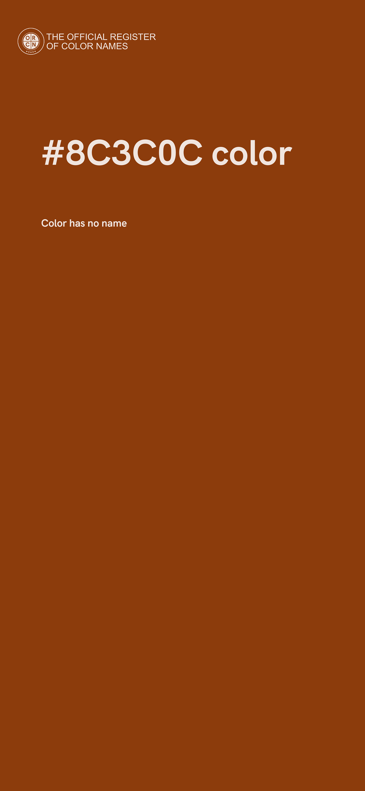 The digital color HEX #8C3C0C belongs to the Orange Color Family featuring High Saturation (Saturation Family) and Neutral (Brightness Family).