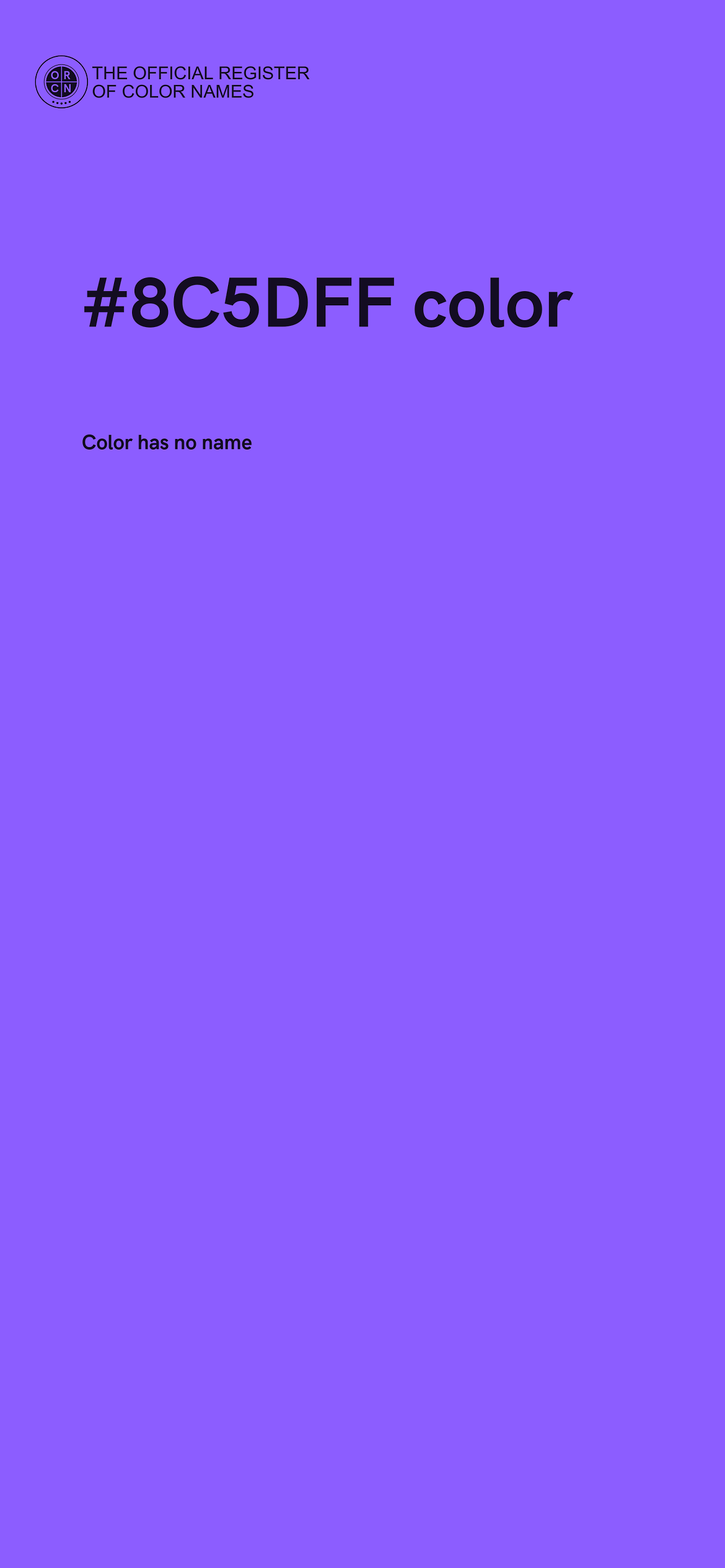 The digital color HEX #8C5DFF belongs to the Violet Color Family featuring Full Saturation (Saturation Family) and Very Light (Brightness Family).