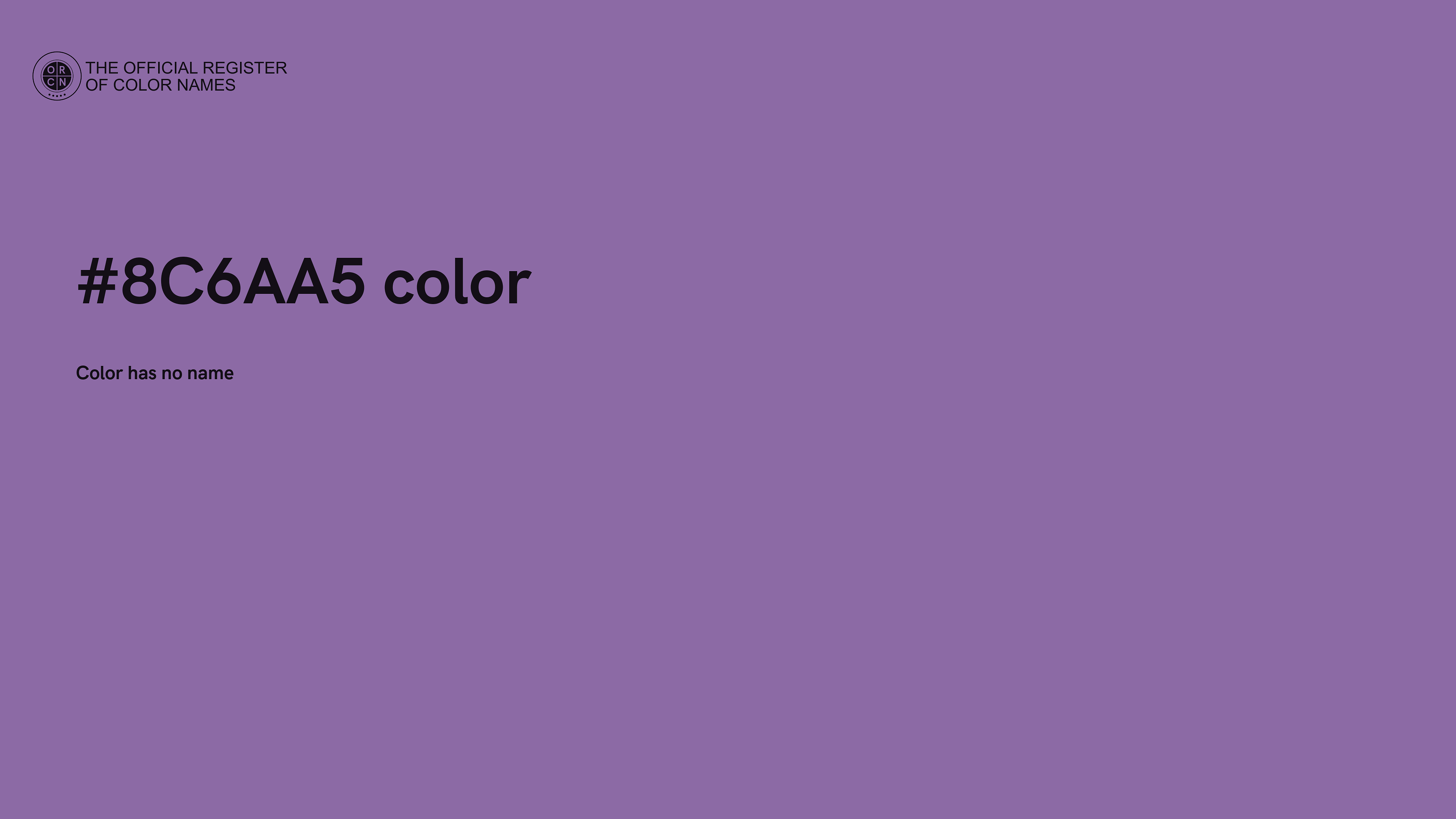 The digital color HEX #8C6AA5 belongs to the Violet Color Family featuring Mild Saturation (Saturation Family) and Light (Brightness Family).