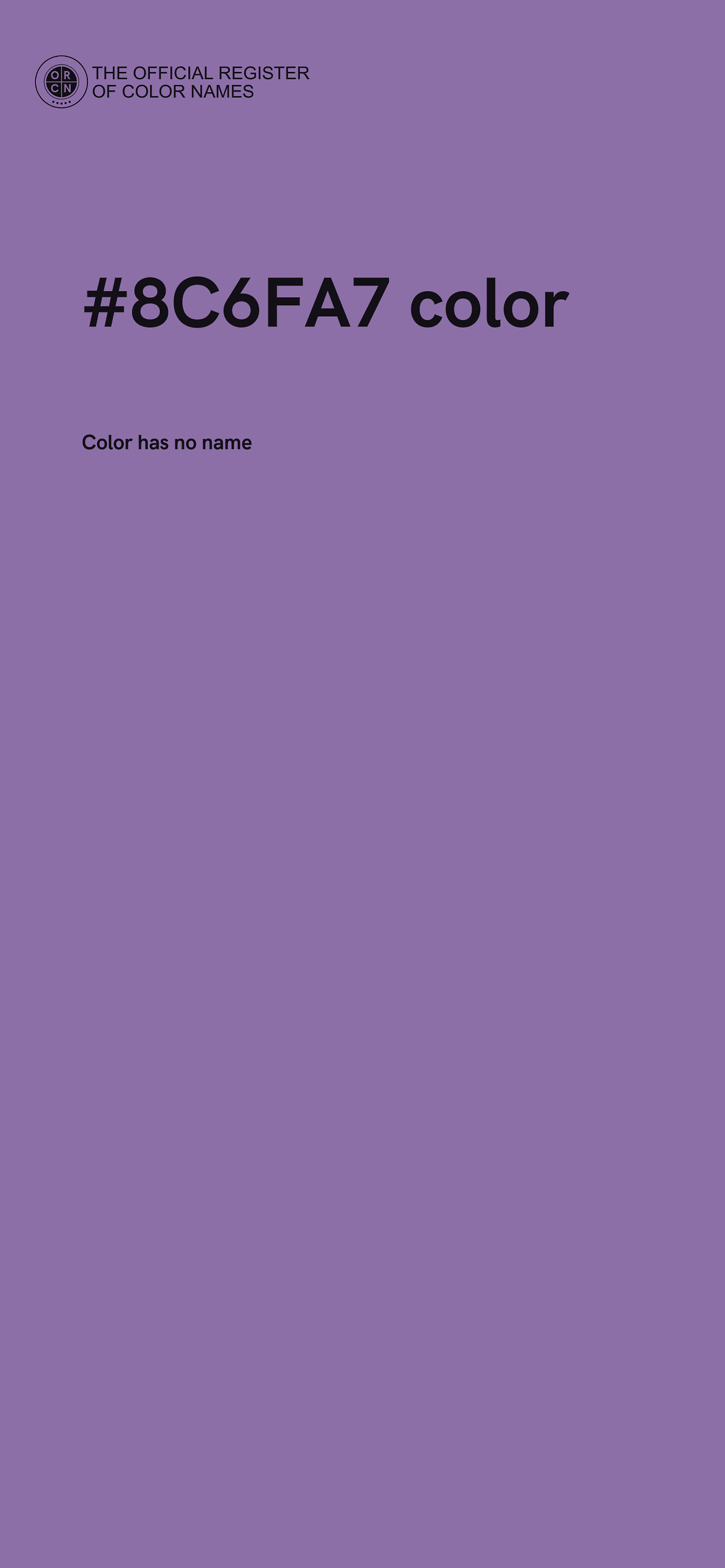 The digital color HEX #8C6FA7 belongs to the Violet Color Family featuring Low Saturation (Saturation Family) and Light (Brightness Family).