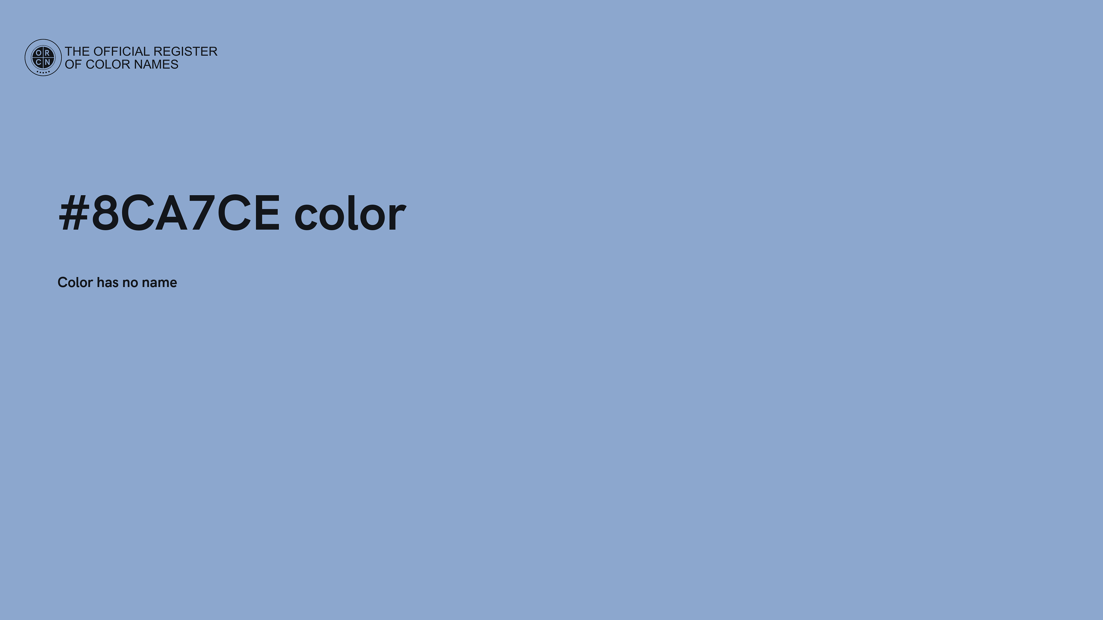 The digital color HEX #8CA7CE belongs to the Azure Color Family featuring Moderate Saturation (Saturation Family) and Very Light (Brightness Family).
