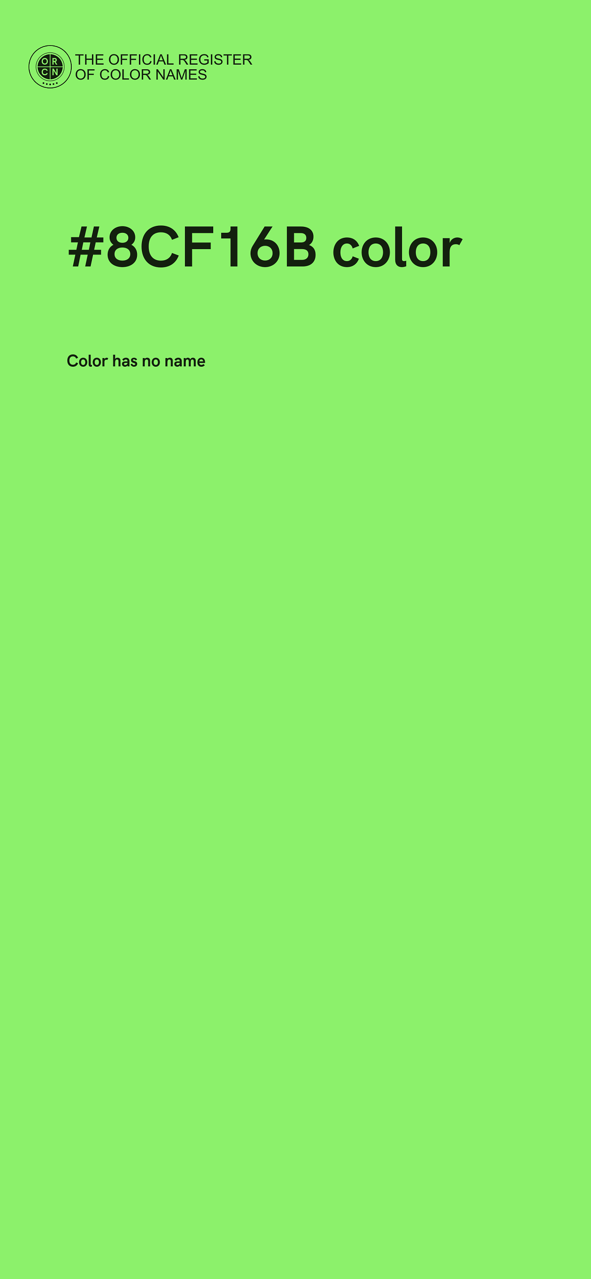 The digital color HEX #8CF16B belongs to the Green Color Family featuring High Saturation (Saturation Family) and Very Light (Brightness Family).