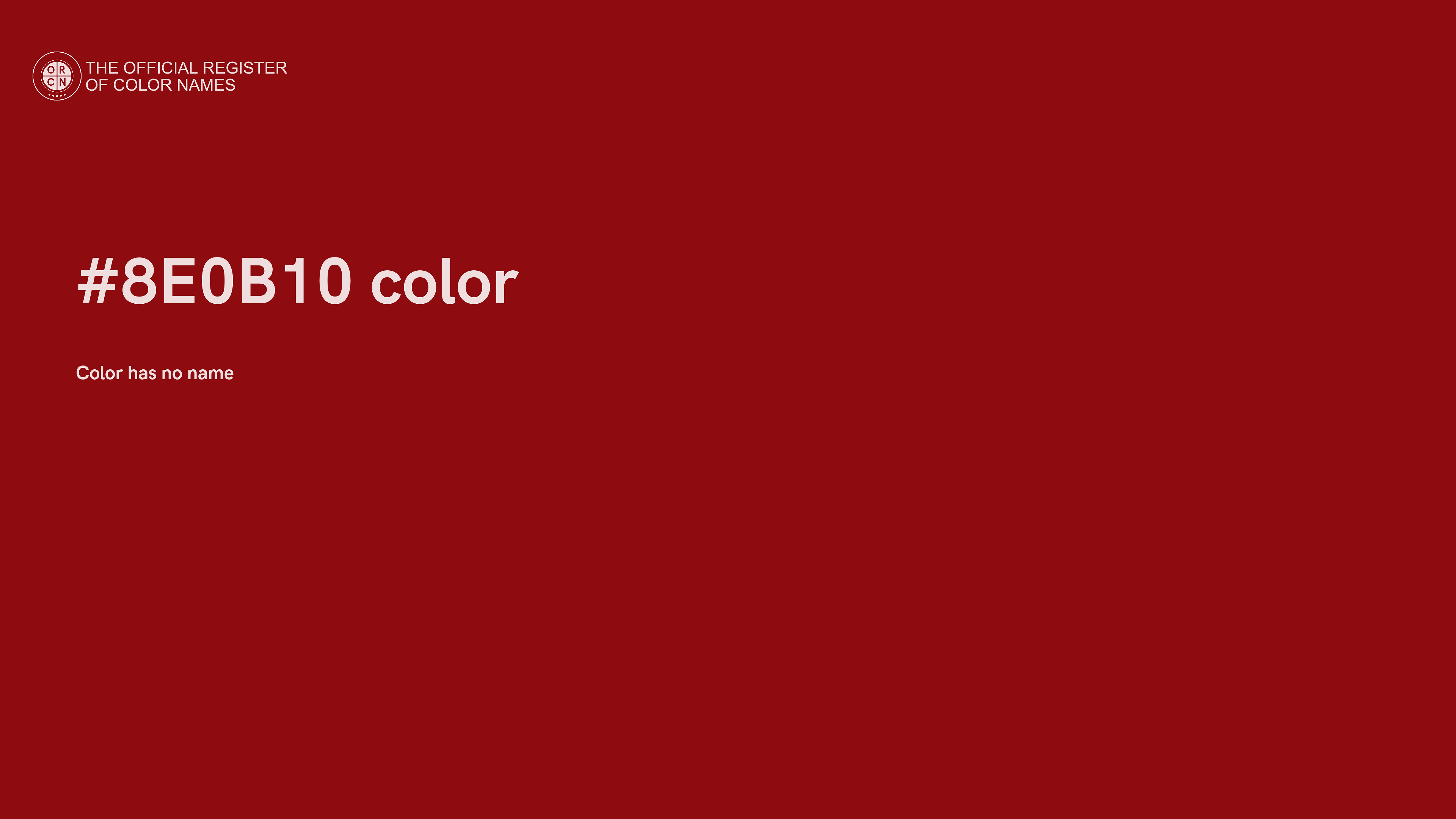 The digital color HEX #8E0B10 belongs to the Red Color Family featuring Full Saturation (Saturation Family) and Neutral (Brightness Family).