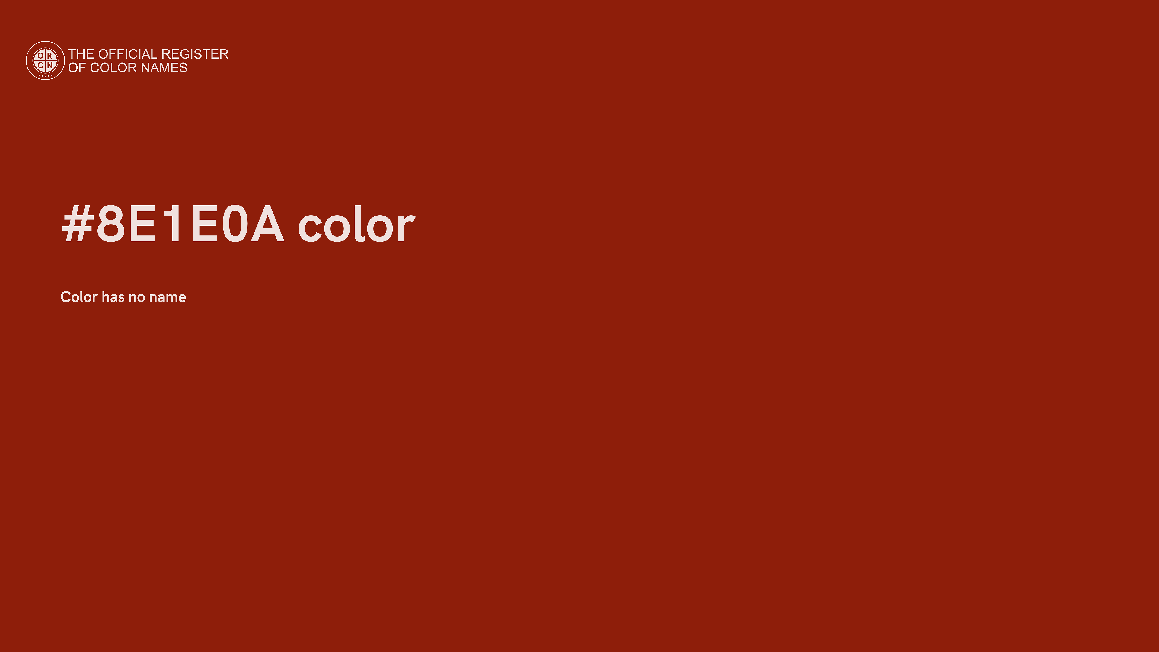 The digital color HEX #8E1E0A belongs to the Red Color Family featuring Full Saturation (Saturation Family) and Neutral (Brightness Family).