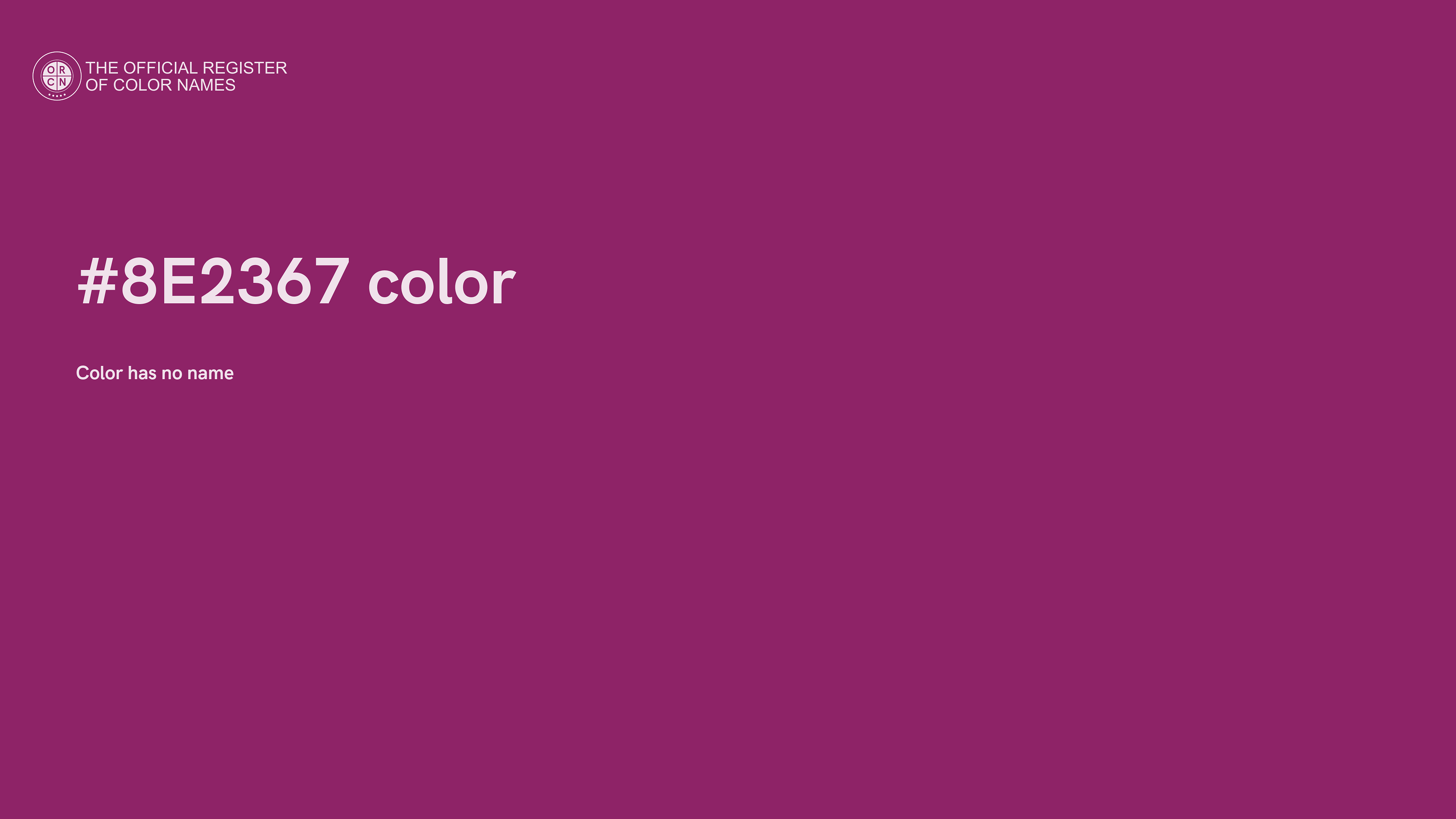 The digital color HEX #8E2367 belongs to the Rose Color Family featuring High Saturation (Saturation Family) and Neutral (Brightness Family).