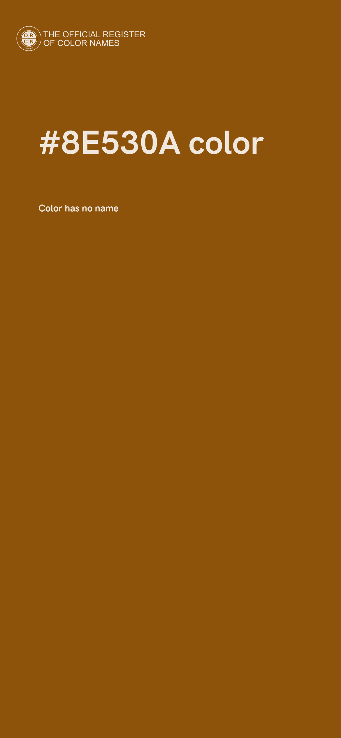 For printing in non digital world, #8E530A is represented in CMYK as 0 Cyan, 23 Magenta, 52 Yellow, and 44 Black (Key) (C:0 M:23 Y:52 K:44).