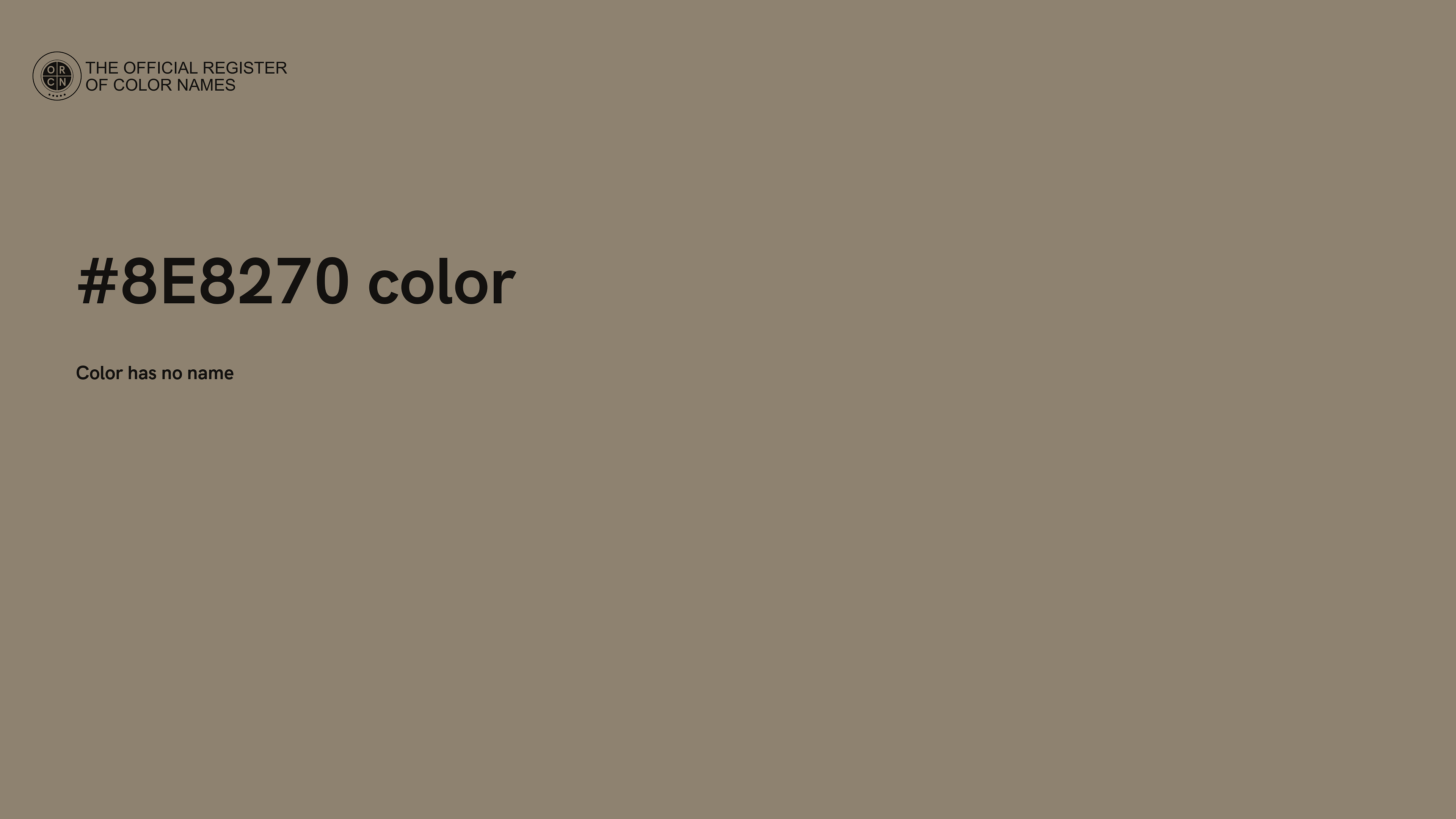 The digital color HEX #8E8270 belongs to the Orange Color Family featuring Low Saturation (Saturation Family) and Light (Brightness Family).
