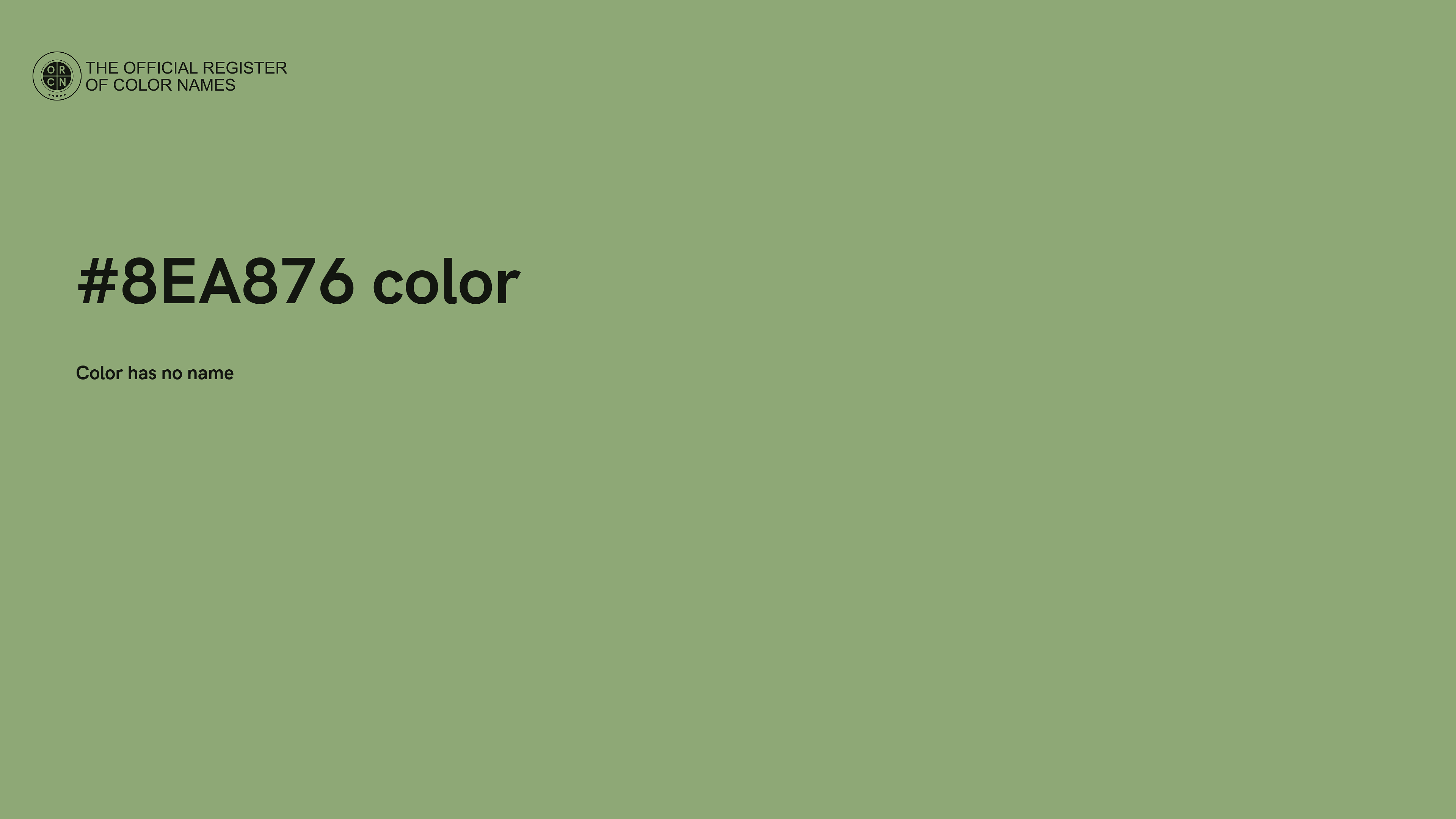 The digital color HEX #8EA876 belongs to the Chartreuse Color Family featuring Low Saturation (Saturation Family) and Light (Brightness Family).