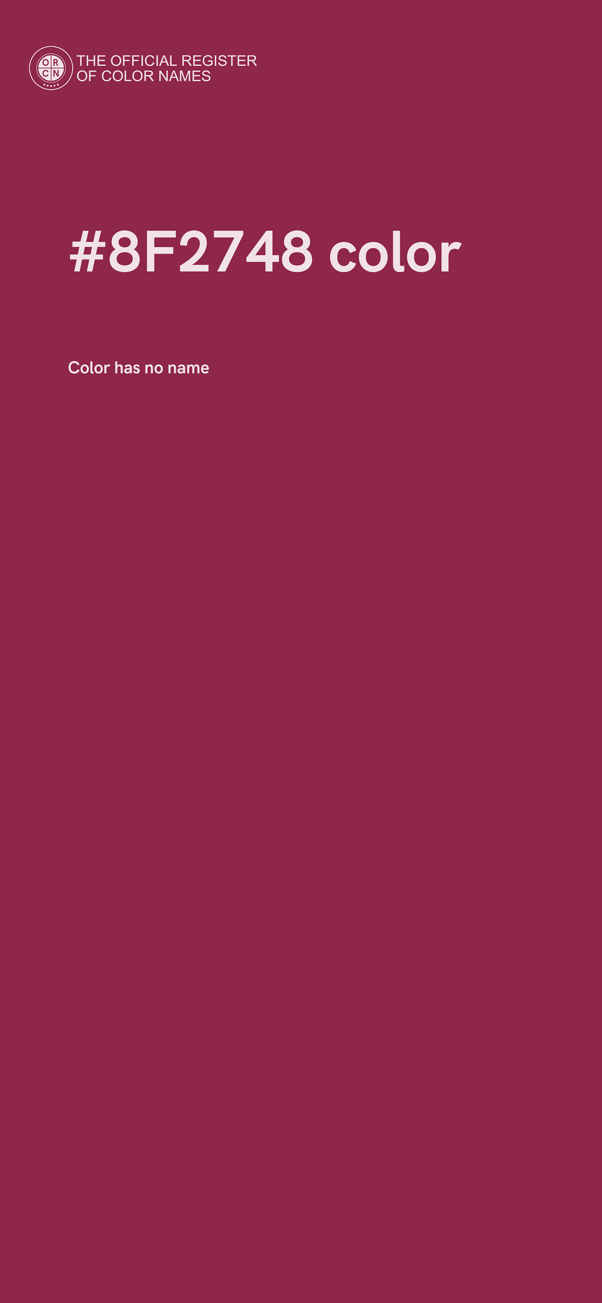The digital color HEX #8F2748 belongs to the Rose Color Family featuring Moderate Saturation (Saturation Family) and Neutral (Brightness Family).