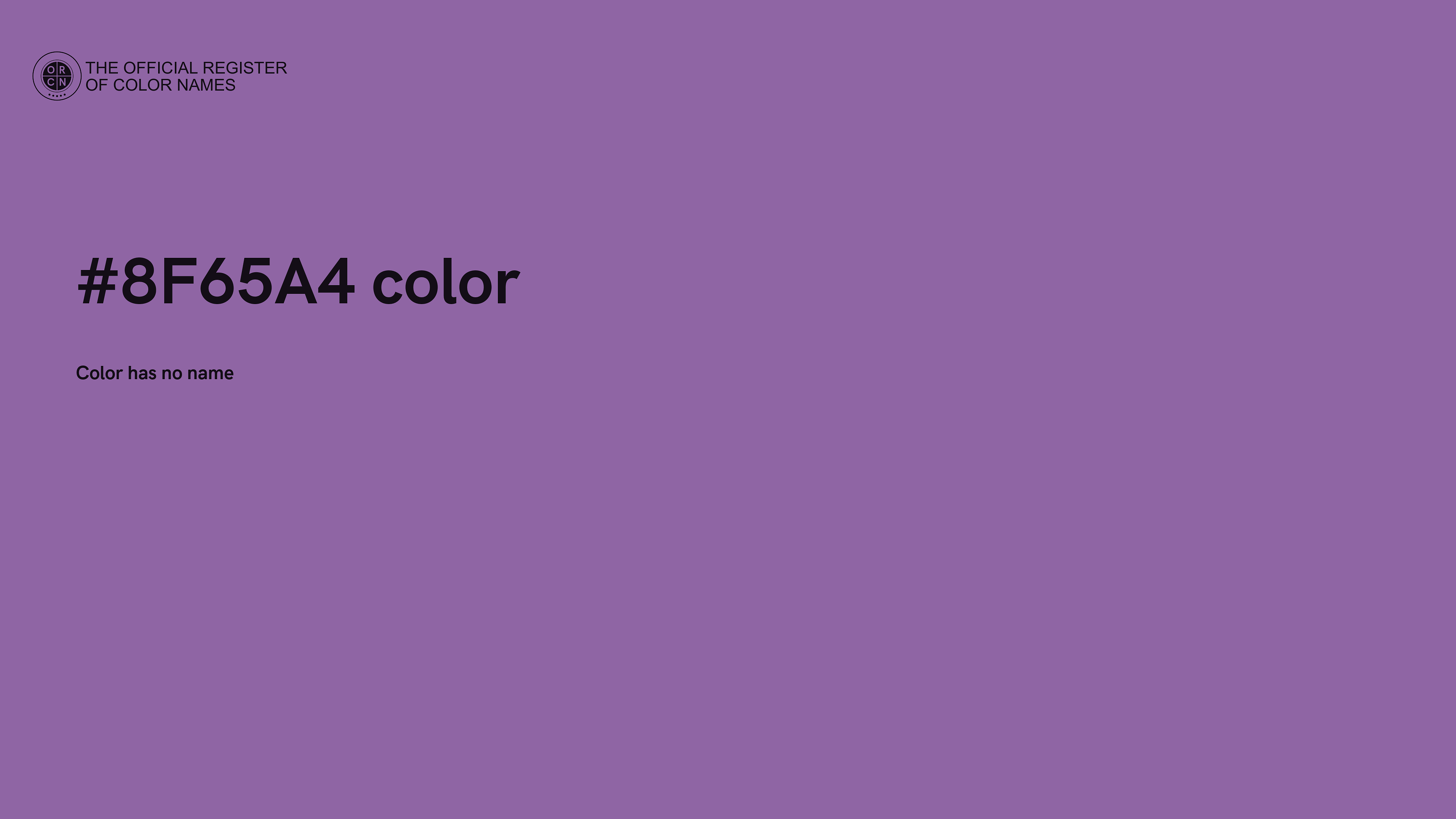 For printing in non digital world, #8F65A4 is represented in CMYK as 8 Cyan, 25 Magenta, 0 Yellow, and 36 Black (Key) (C:8 M:25 Y:0 K:36).