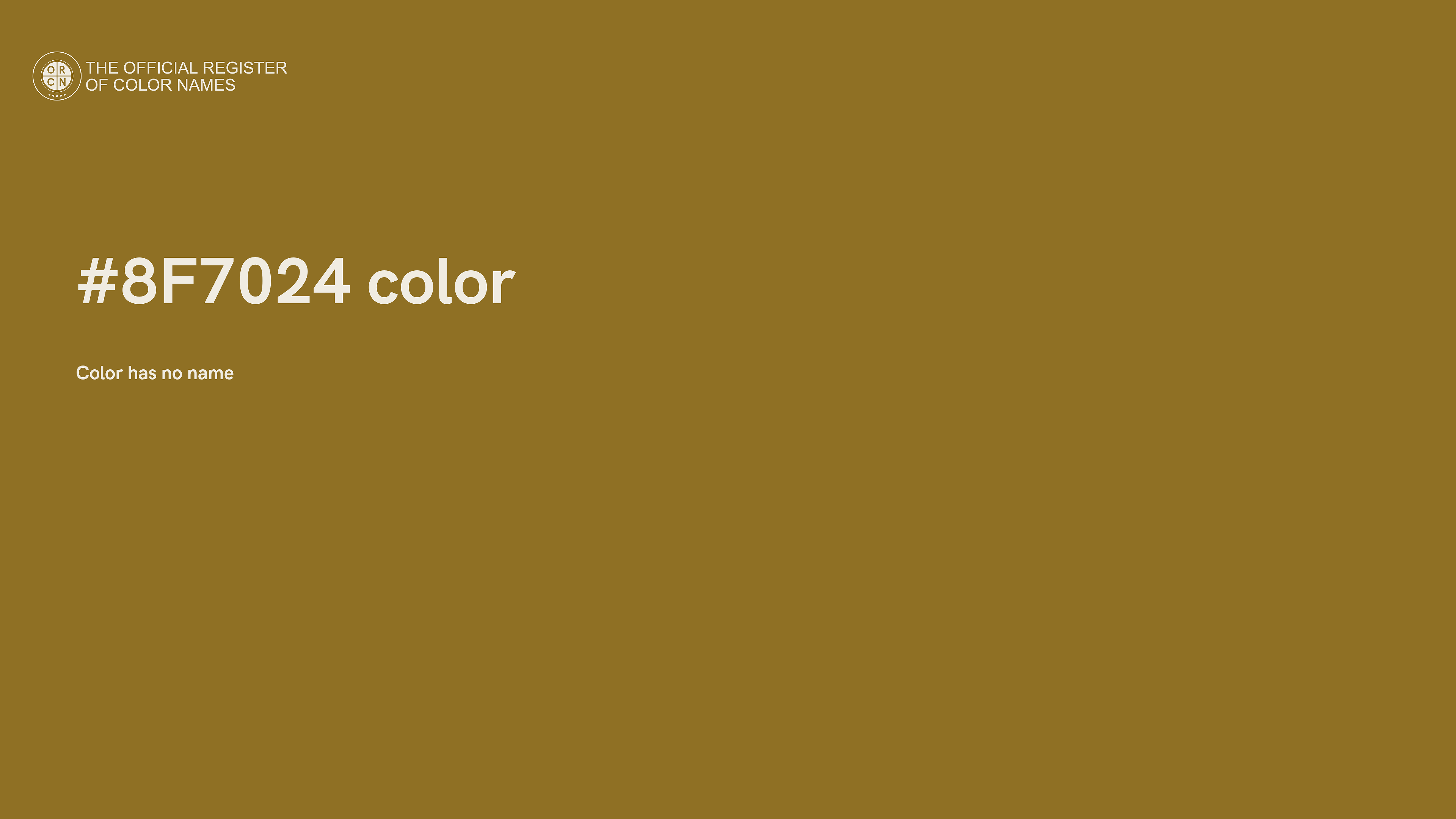 The digital color HEX #8F7024 belongs to the Orange Color Family featuring High Saturation (Saturation Family) and Neutral (Brightness Family).