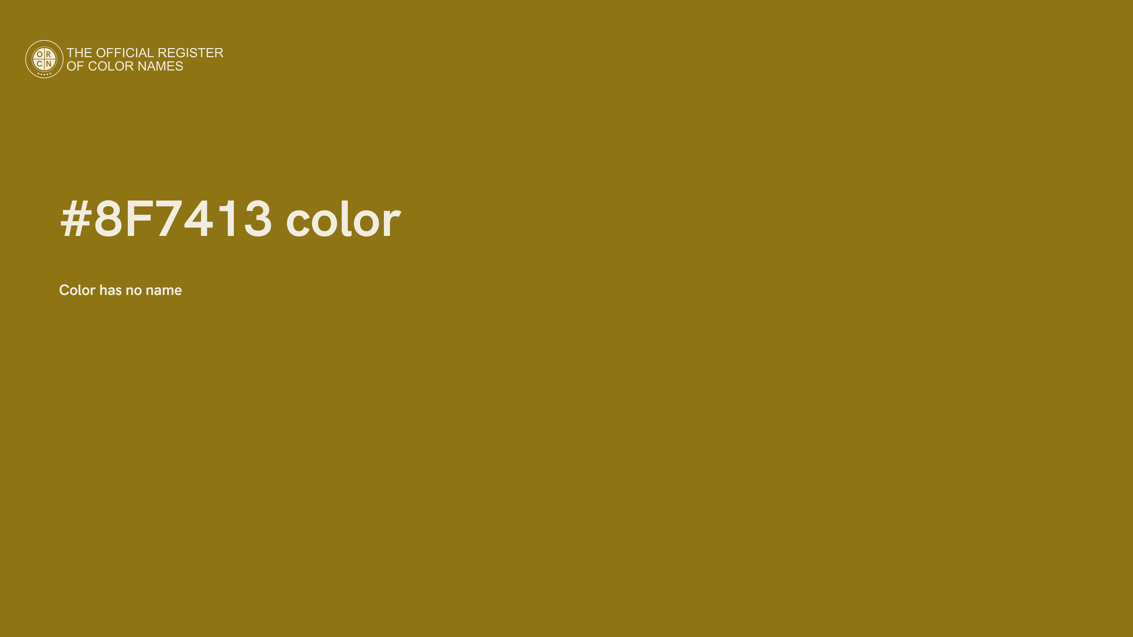 For printing in non digital world, #8F7413 is represented in CMYK as 0 Cyan, 11 Magenta, 49 Yellow, and 44 Black (Key) (C:0 M:11 Y:49 K:44).