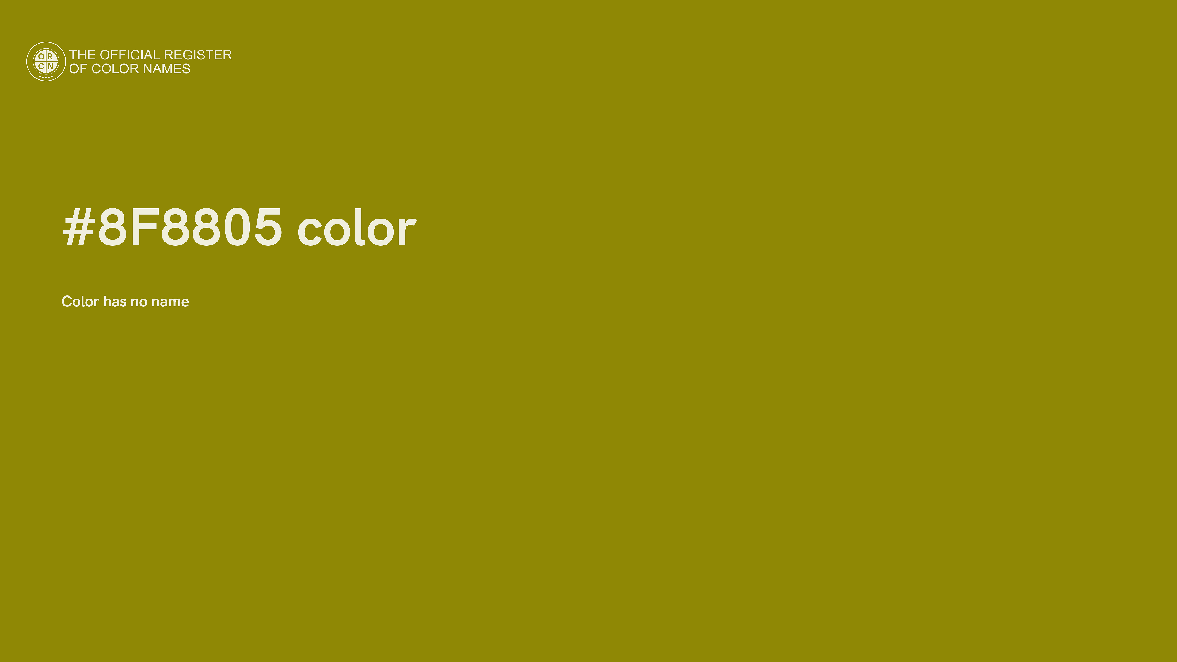 The digital color HEX #8F8805 belongs to the Yellow Color Family featuring Full Saturation (Saturation Family) and Neutral (Brightness Family).