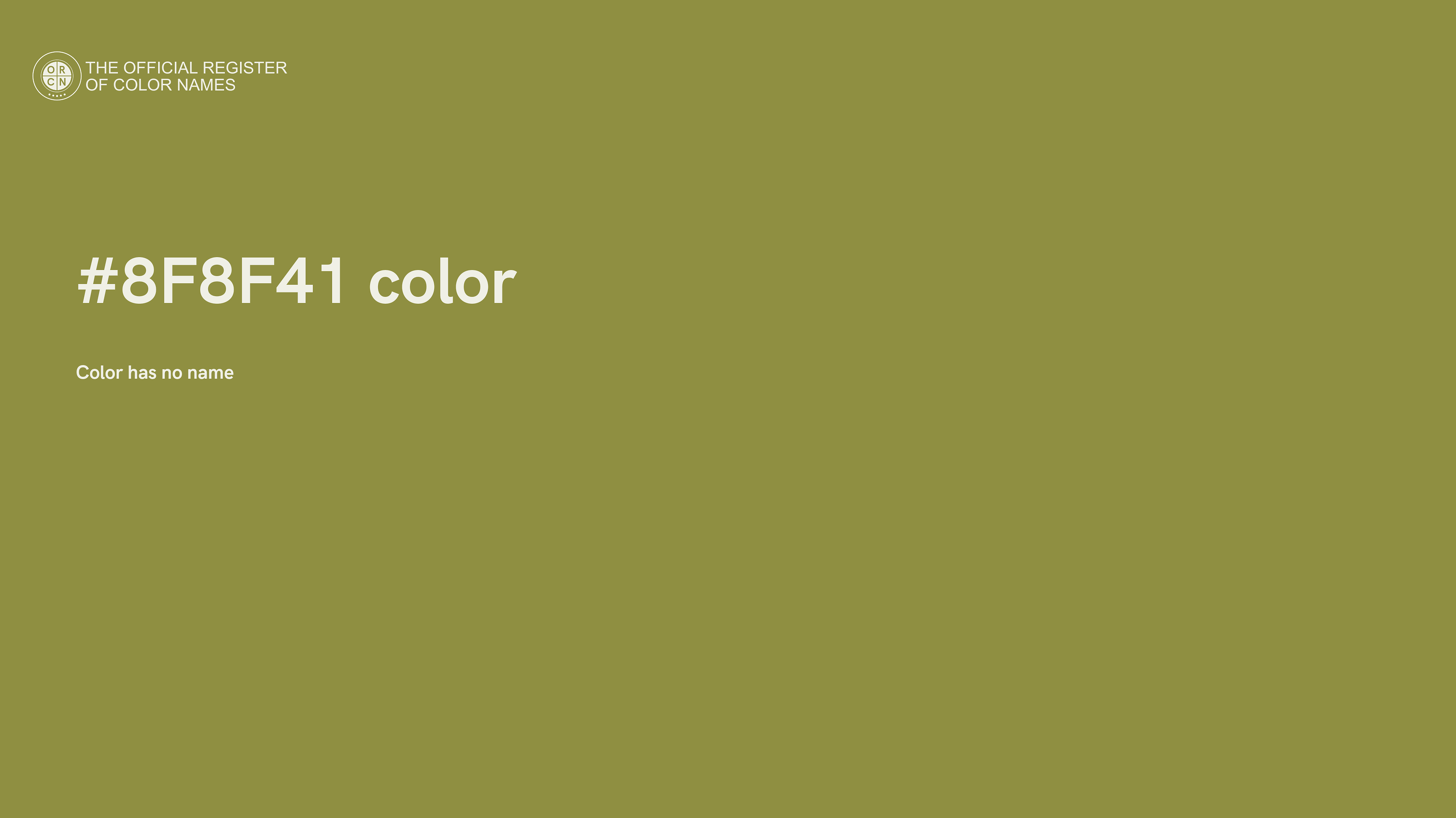 The digital color HEX #8F8F41 belongs to the Yellow Color Family featuring Mild Saturation (Saturation Family) and Light (Brightness Family).