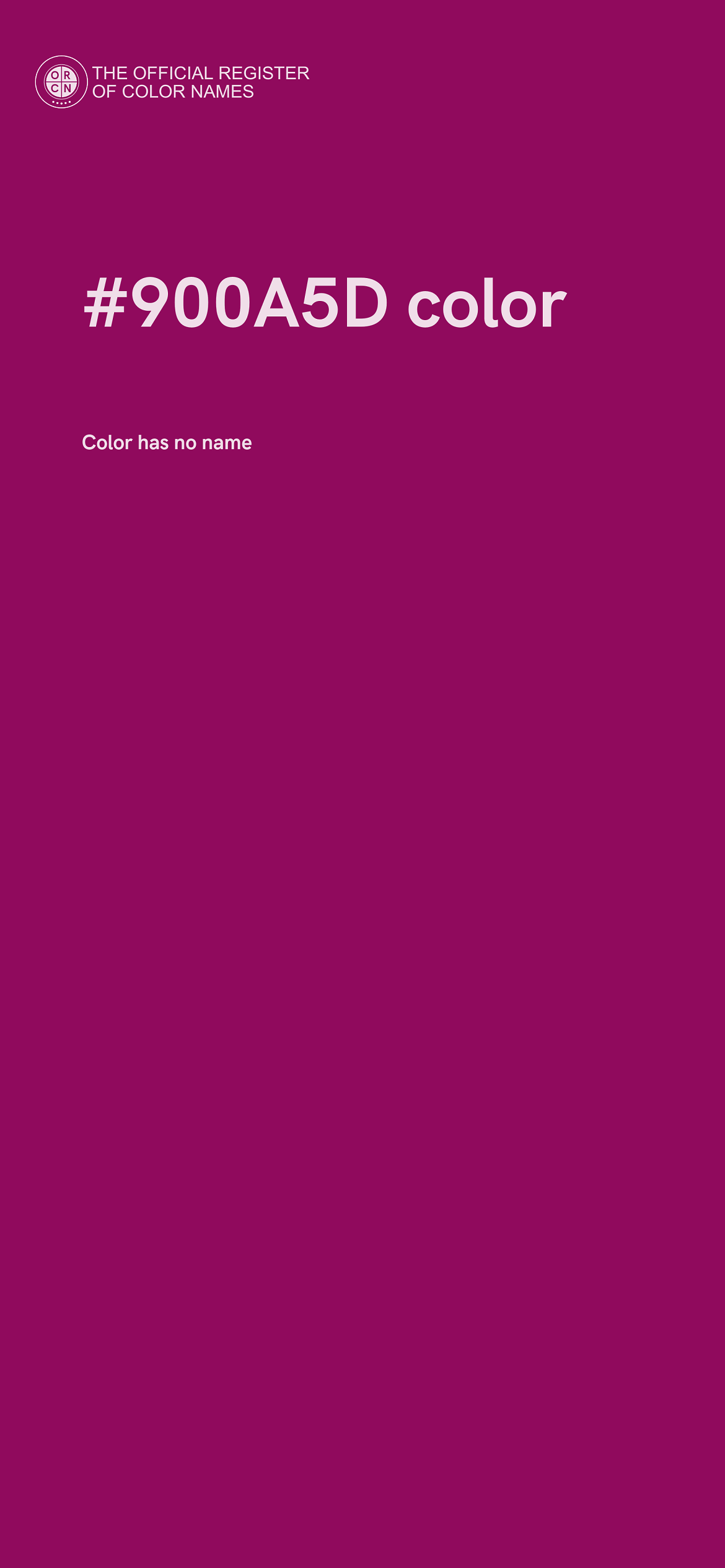 The digital color HEX #900A5D belongs to the Rose Color Family featuring Full Saturation (Saturation Family) and Neutral (Brightness Family).