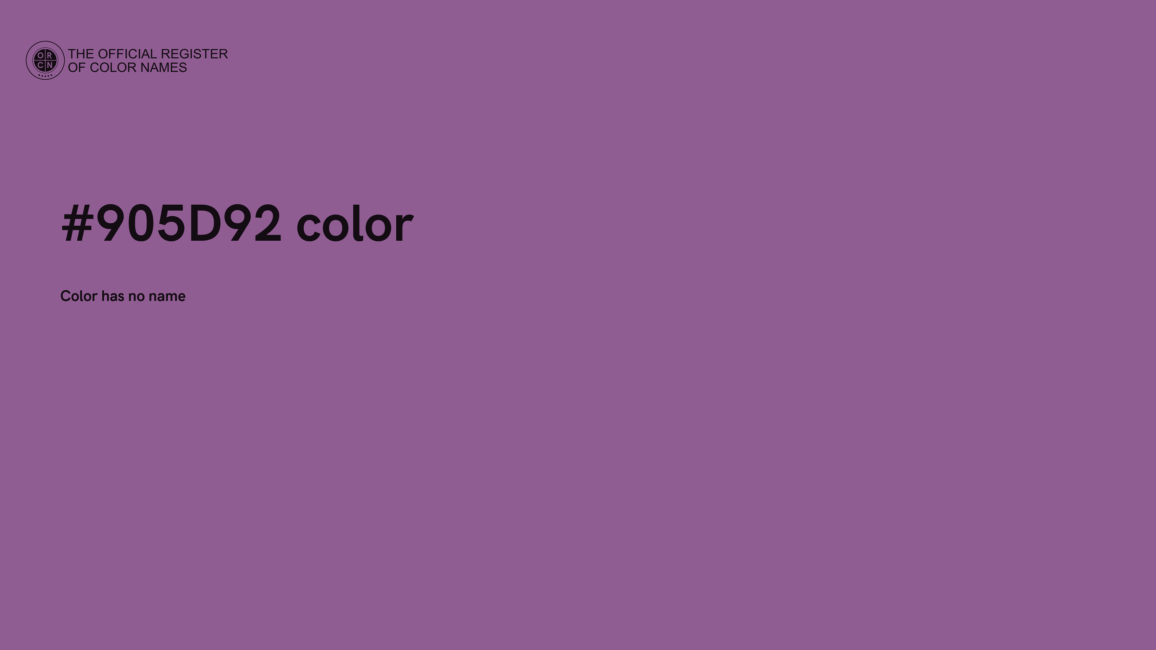 For printing in non digital world, #905D92 is represented in CMYK as 1 Cyan, 21 Magenta, 0 Yellow, and 43 Black (Key) (C:1 M:21 Y:0 K:43).